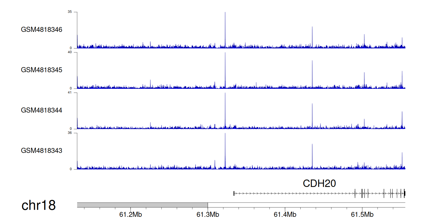 > Dataset: GSE131257 - CDH20 peak across samples