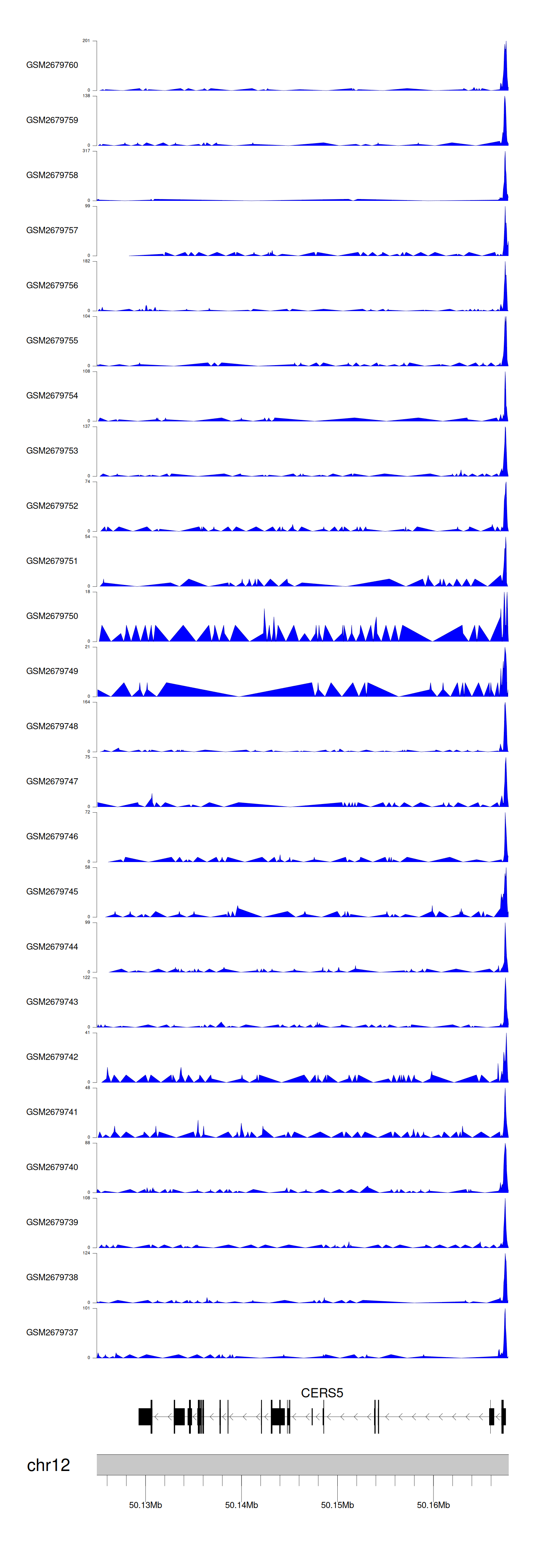 > Dataset: GSE100376 - CERS5 peak across samples