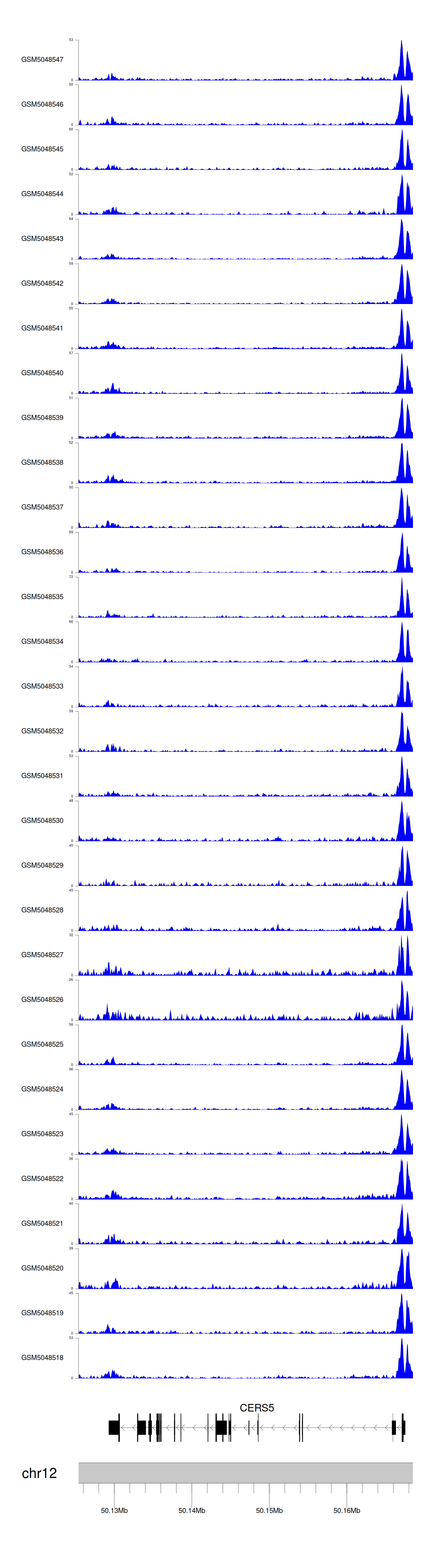 > Dataset: GSE144329 - CERS5 peak across samples