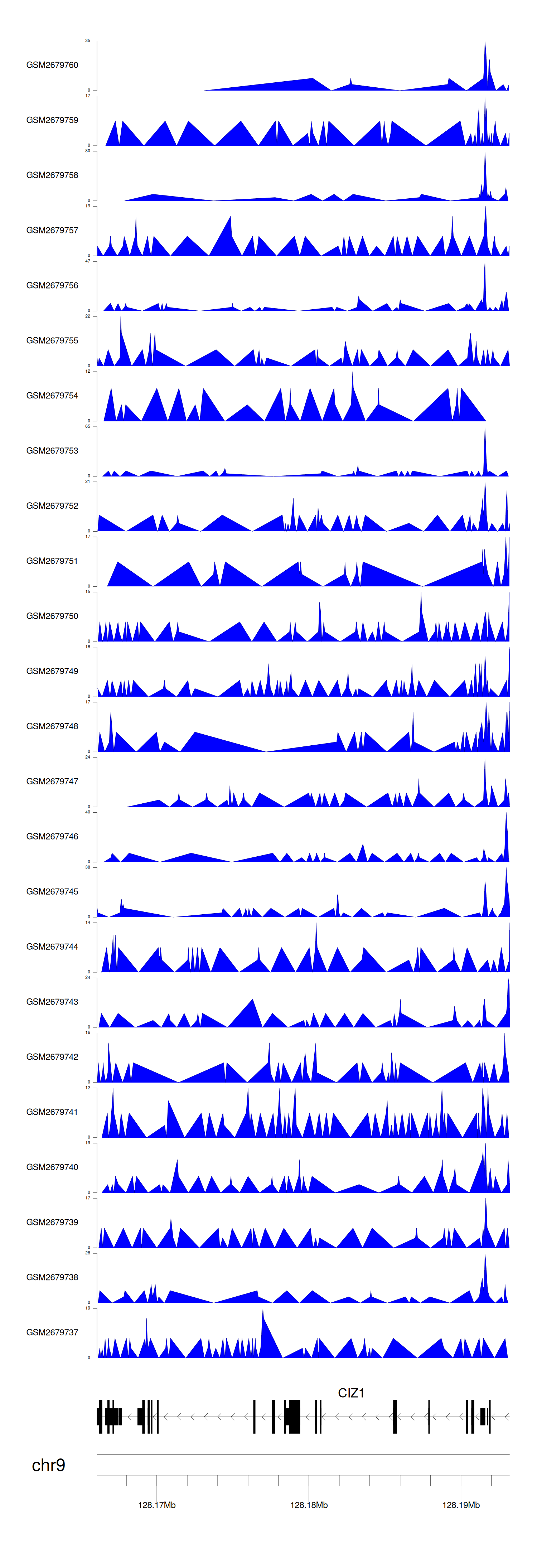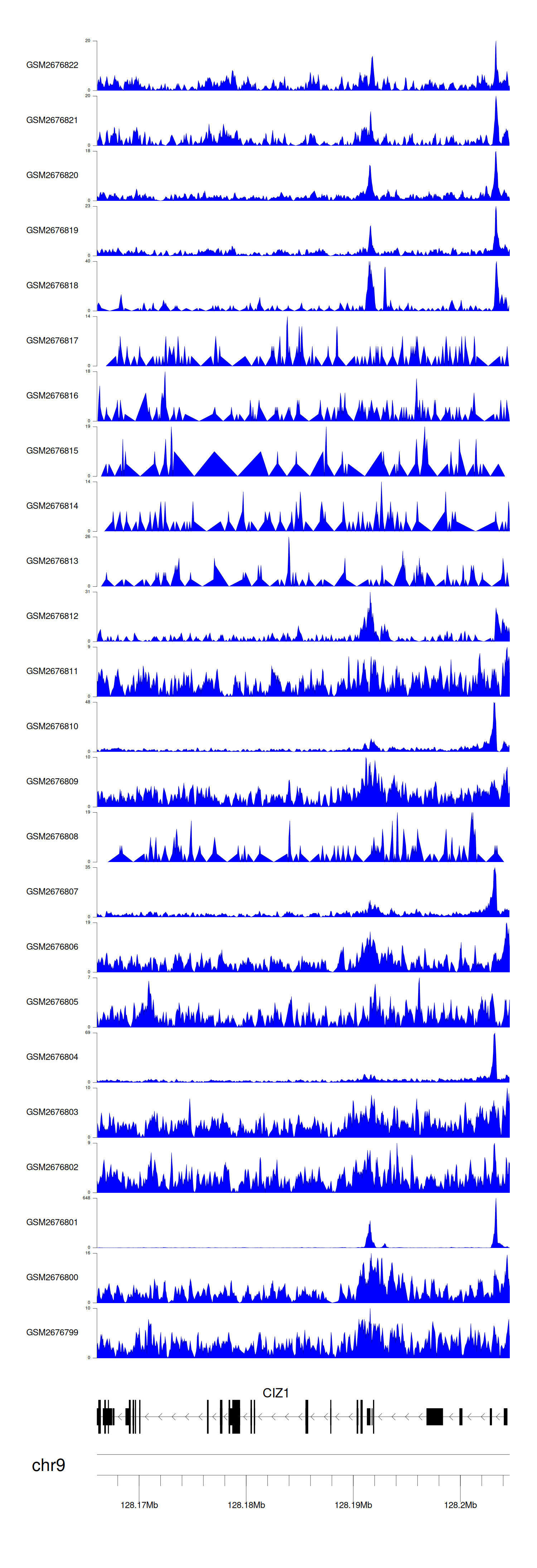 > Dataset: GSE100376 - CIZ1 peak across samples