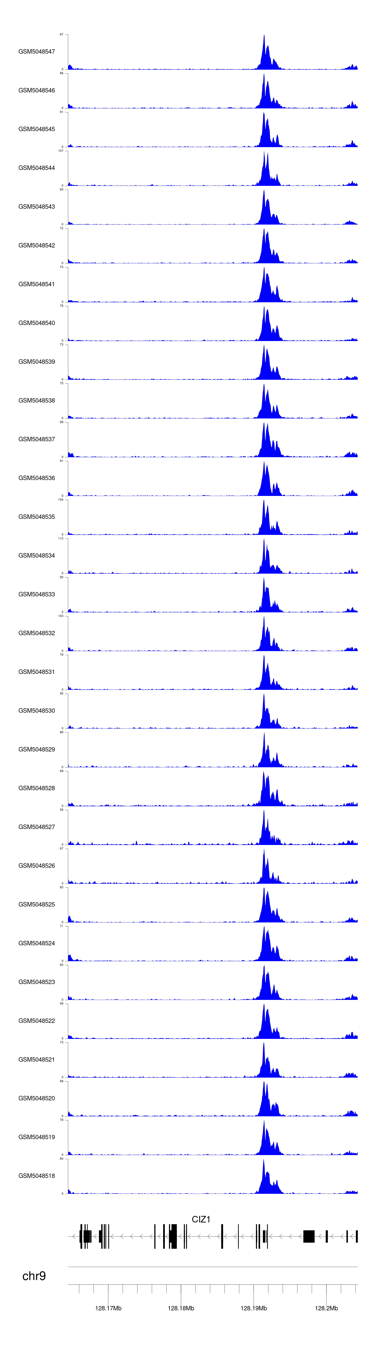 > Dataset: GSE165703 - CIZ1 peak across samples