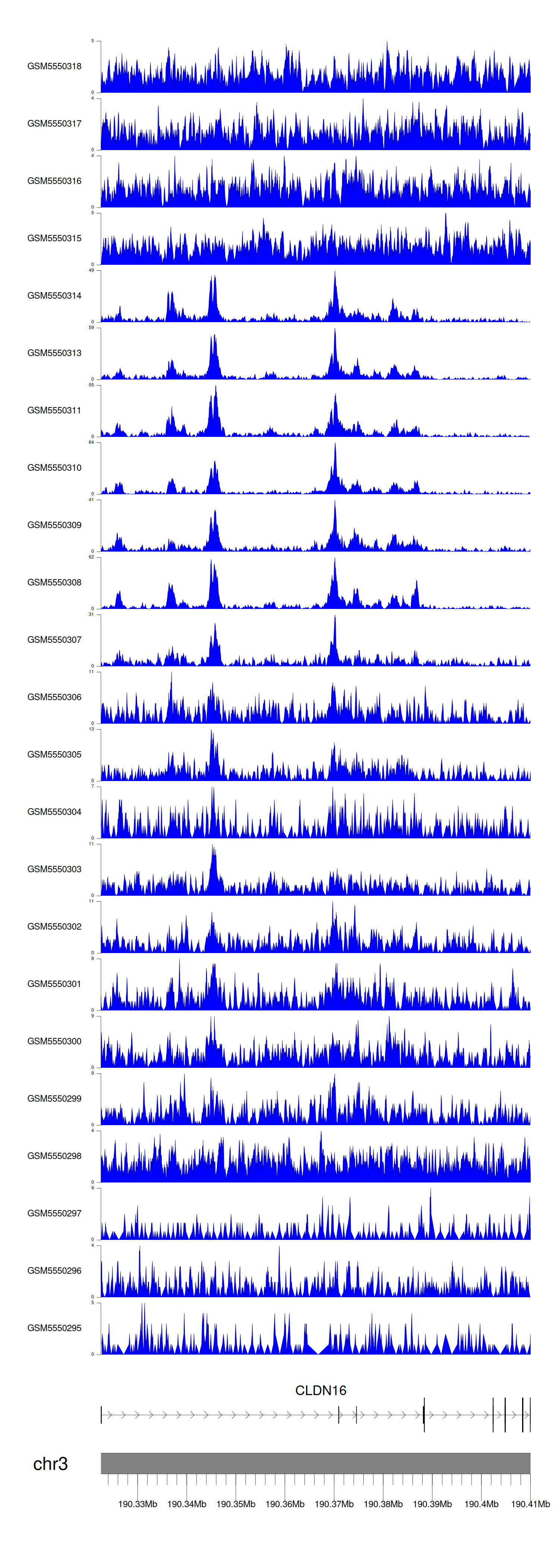 > Dataset: GSE143026 - CLDN16 peak across samples