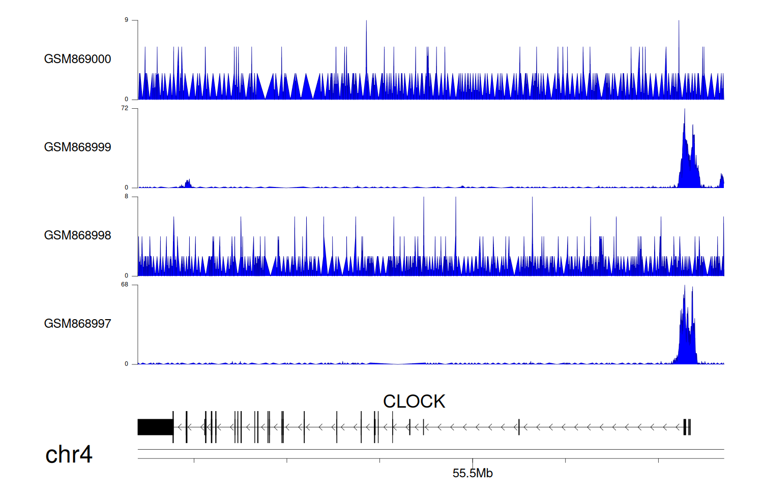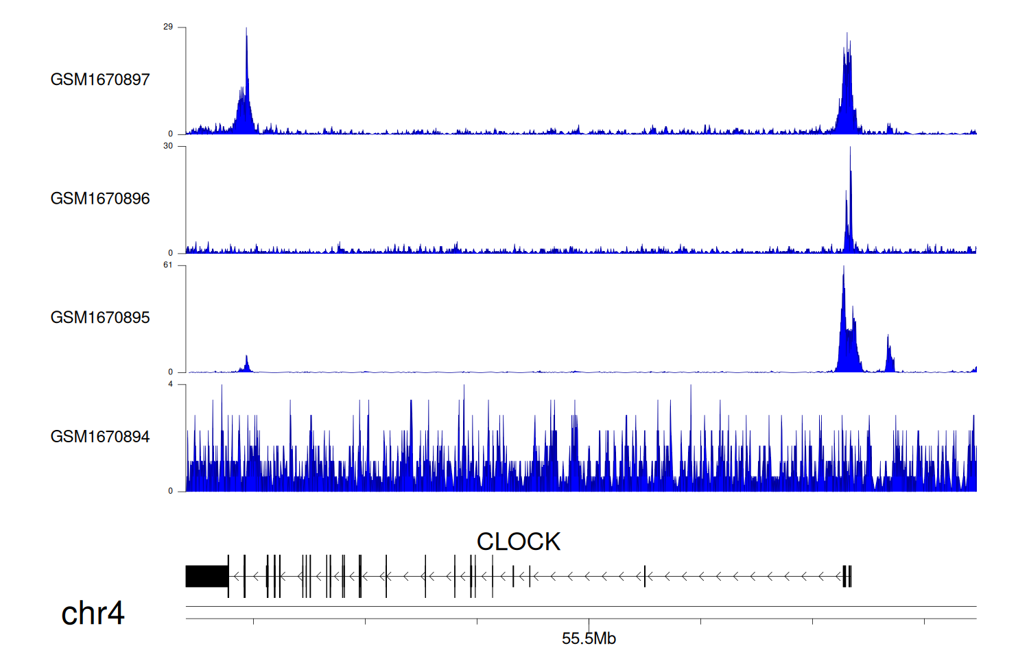 Summary The protein encoded by this gene plays a central role in the regulation of circadian rhythms. The protein encodes a transcription factor of the basic helix-loop-helix (bHLH) family and contains DNA binding histone acetyltransferase activity. The encoded protein forms a heterodimer with ARNTL (BMAL1) that binds E-box enhancer elements upstream of Period (PER1, PER2, PER3) and Cryptochrome (CRY1, CRY2) genes and activates transcription of these genes. PER and CRY proteins heterodimerize and repress their own transcription by interacting in a feedback loop with CLOCK/ARNTL complexes. Polymorphisms in this gene may be associated with behavioral changes in certain populations and with obesity and metabolic syndrome. Alternative splicing results in multiple transcript variants. [provided by RefSeq, Jan 2014]