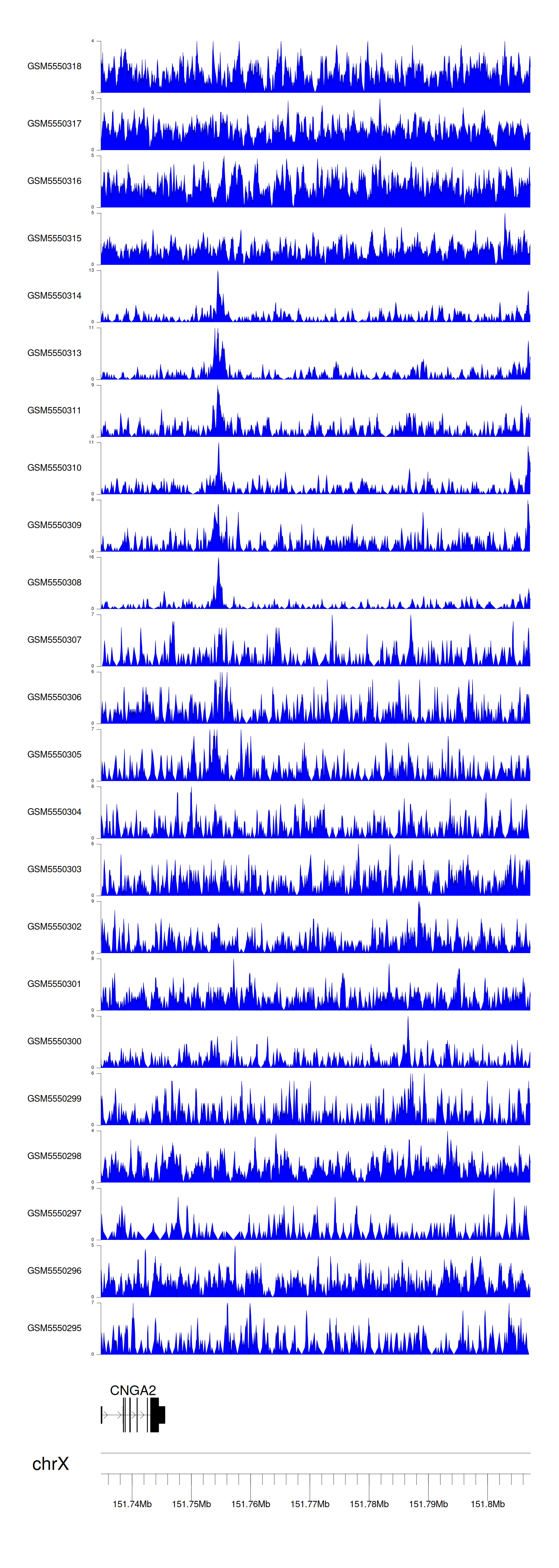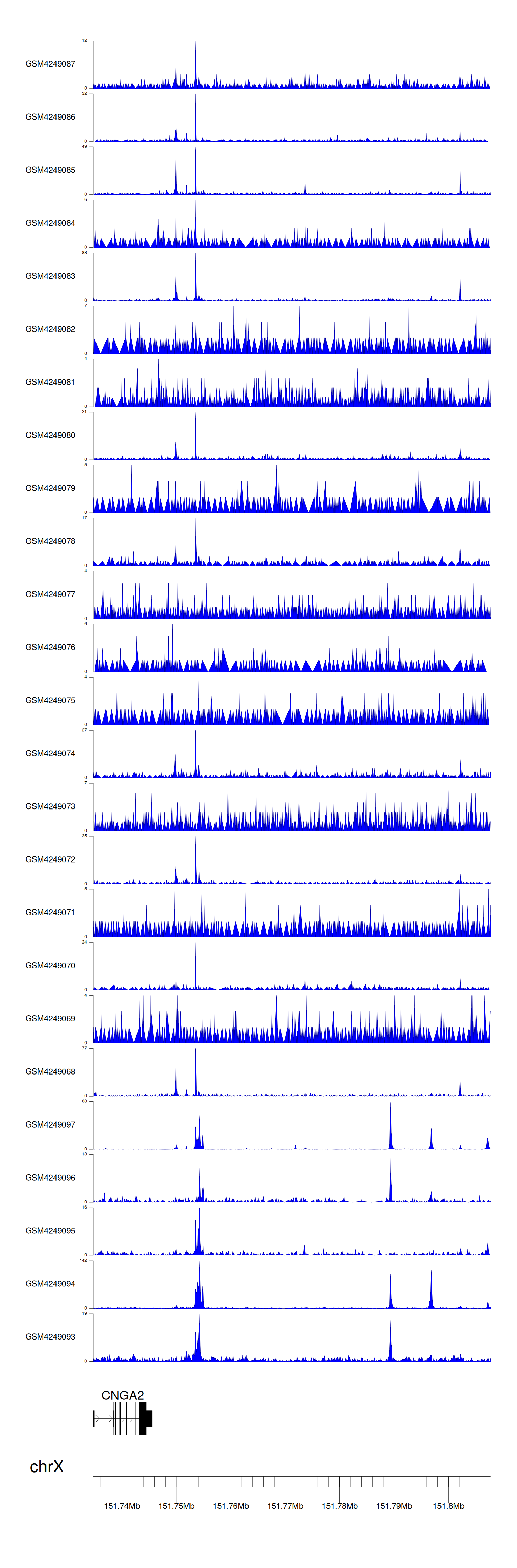 > Dataset: GSE143026 - CNGA2 peak across samples
