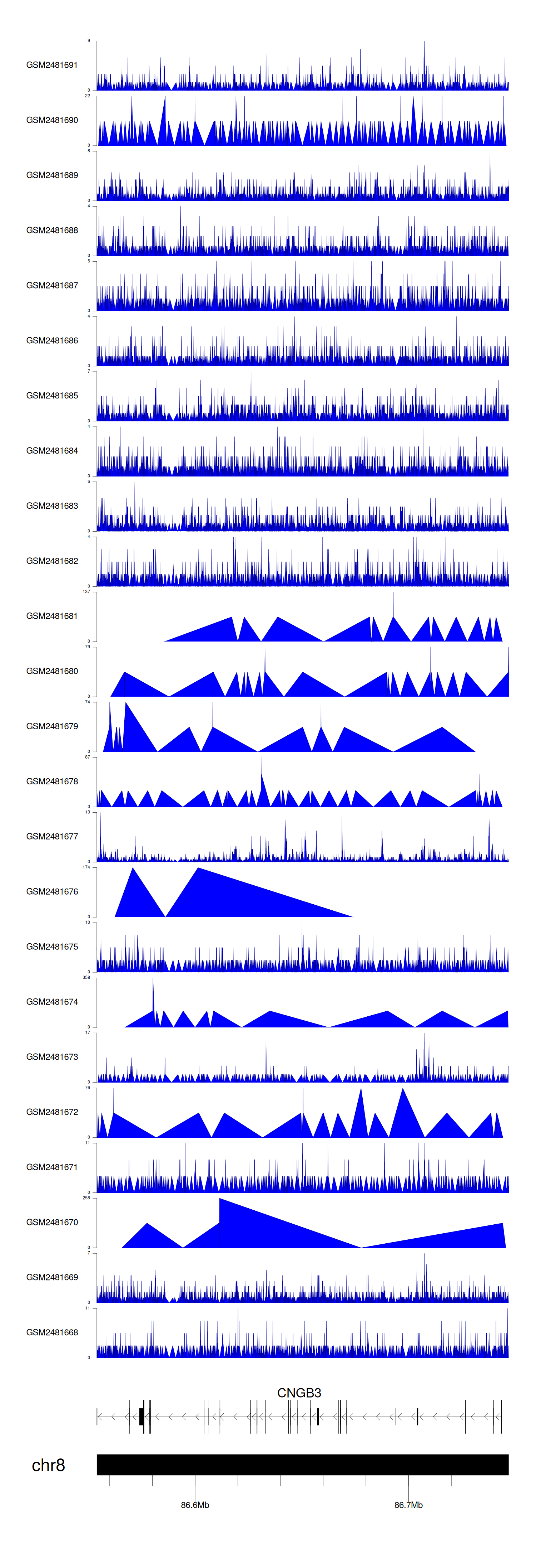 > Dataset: GSE94732 - CNGB3 peak across samples