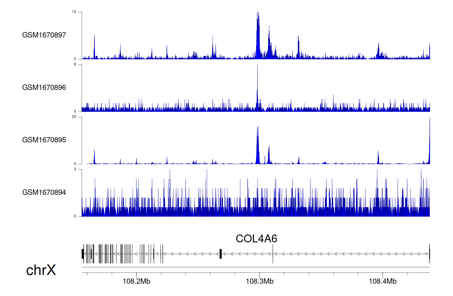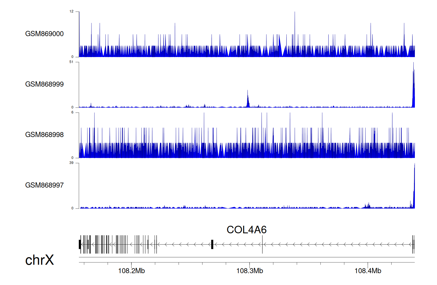 > Dataset: GSE68402 - COL4A6 peak across samples