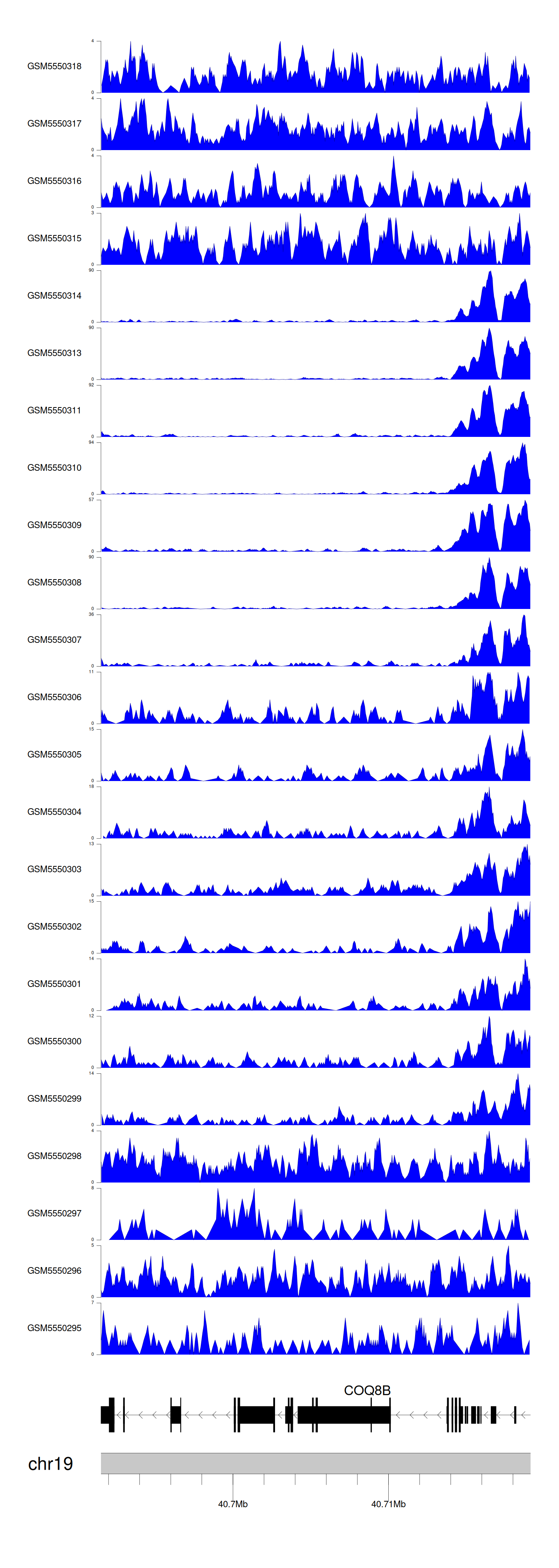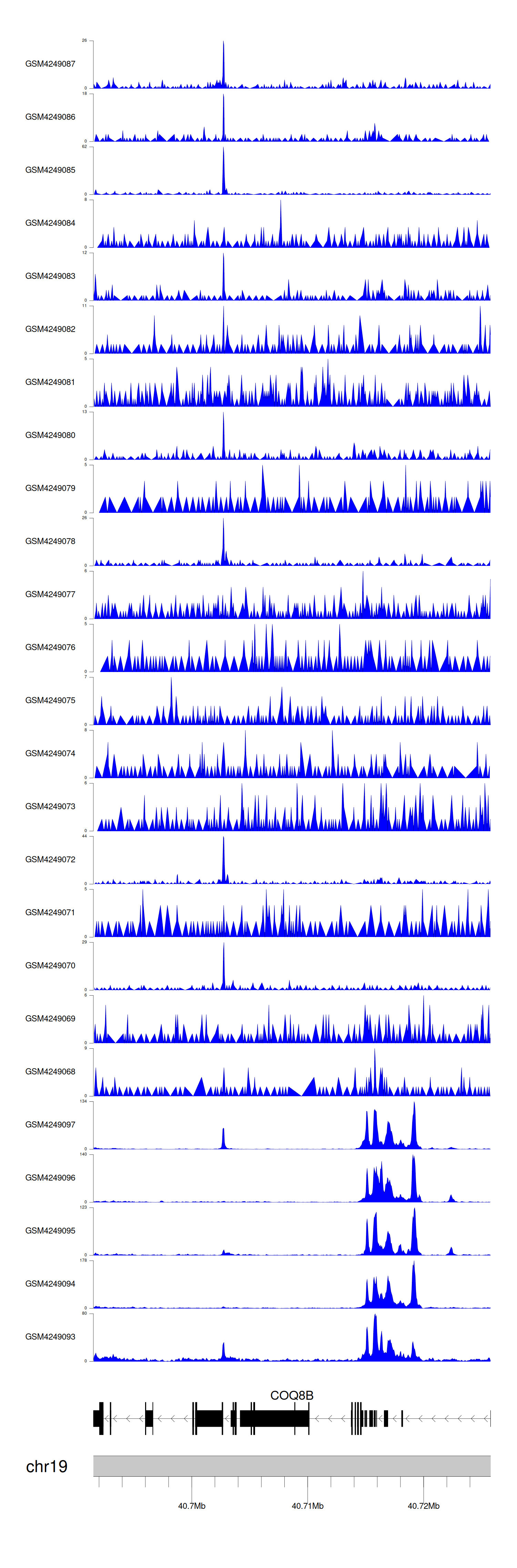 > Dataset: GSE143026 - COQ8B peak across samples
