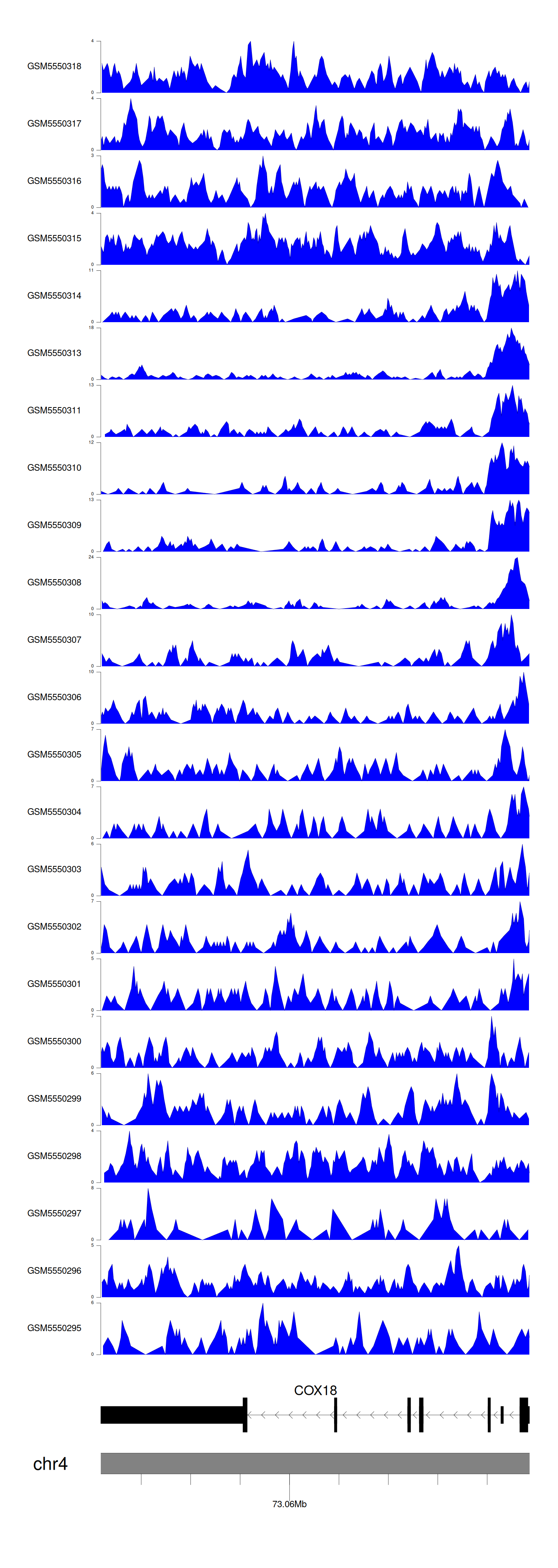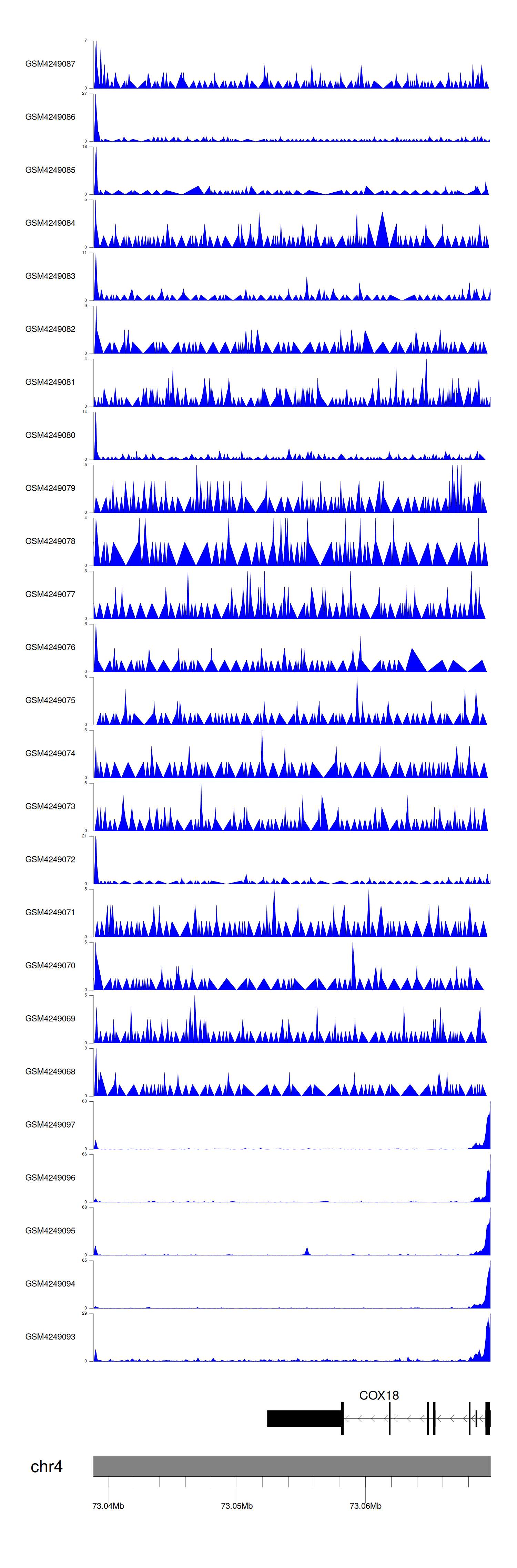 > Dataset: GSE143026 - COX18 peak across samples