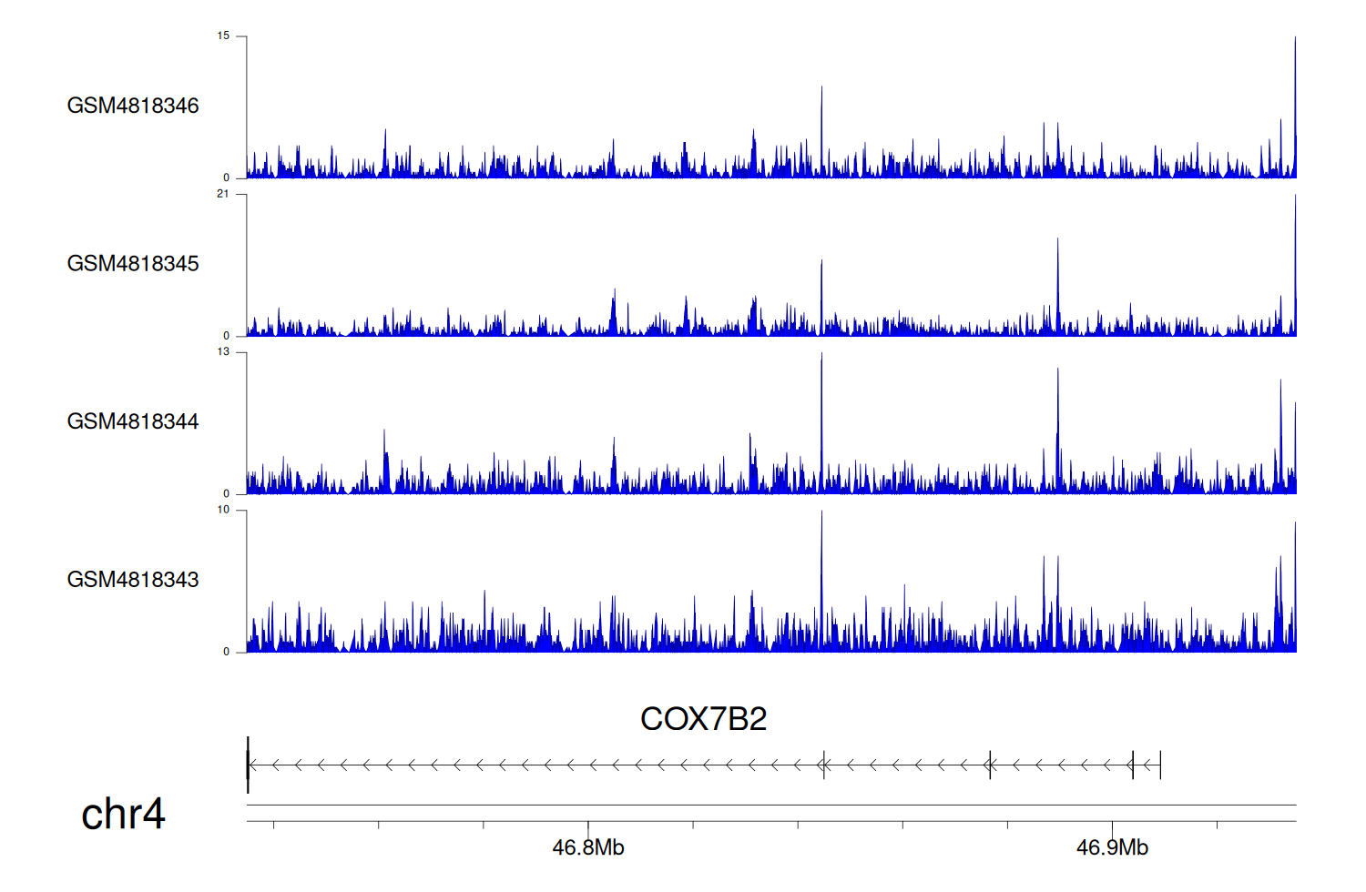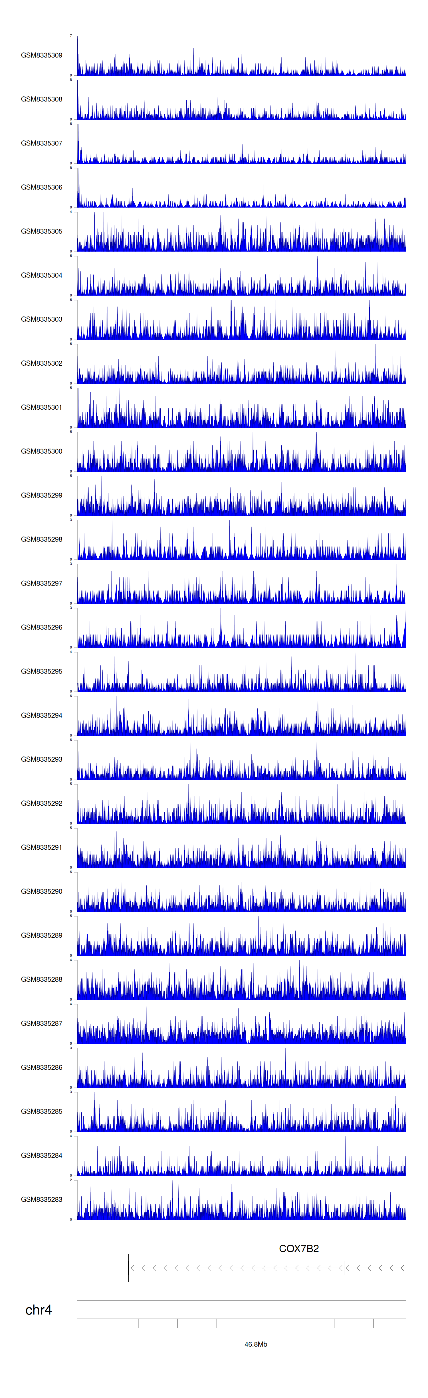 > Dataset: GSE270130 - COX7B2 peak across samples