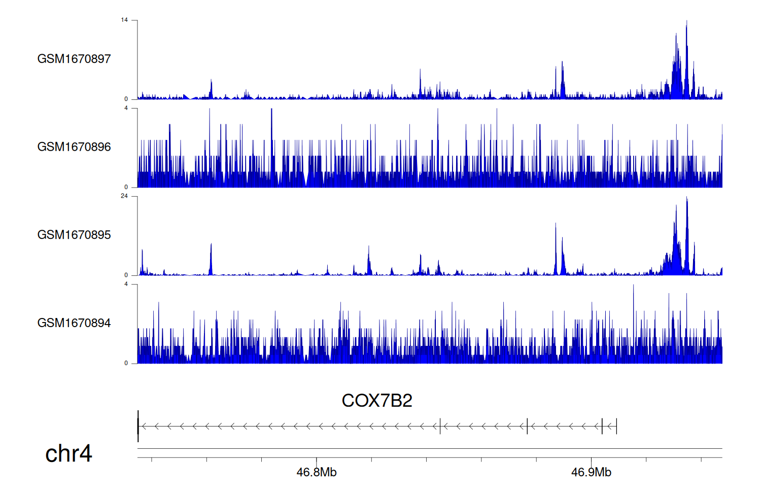 > Dataset: GSE68402 - COX7B2 peak across samples
