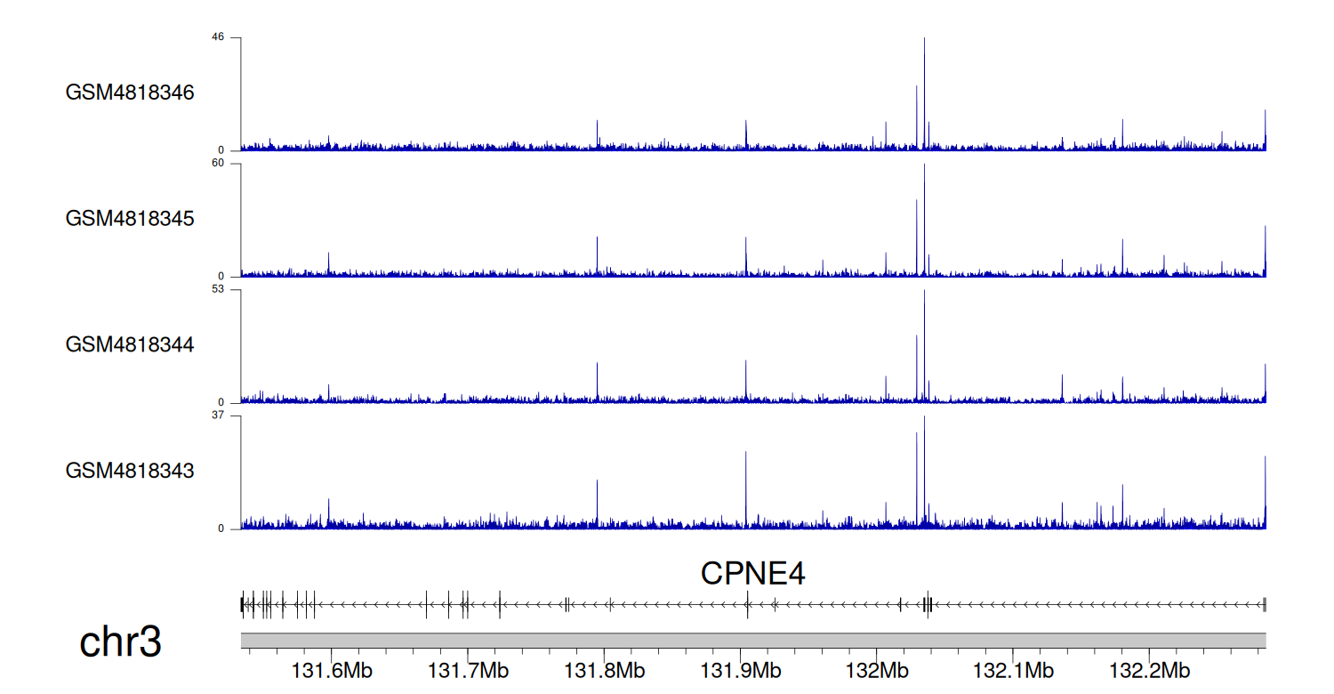 > Dataset: GSE131257 - CPNE4 peak across samples