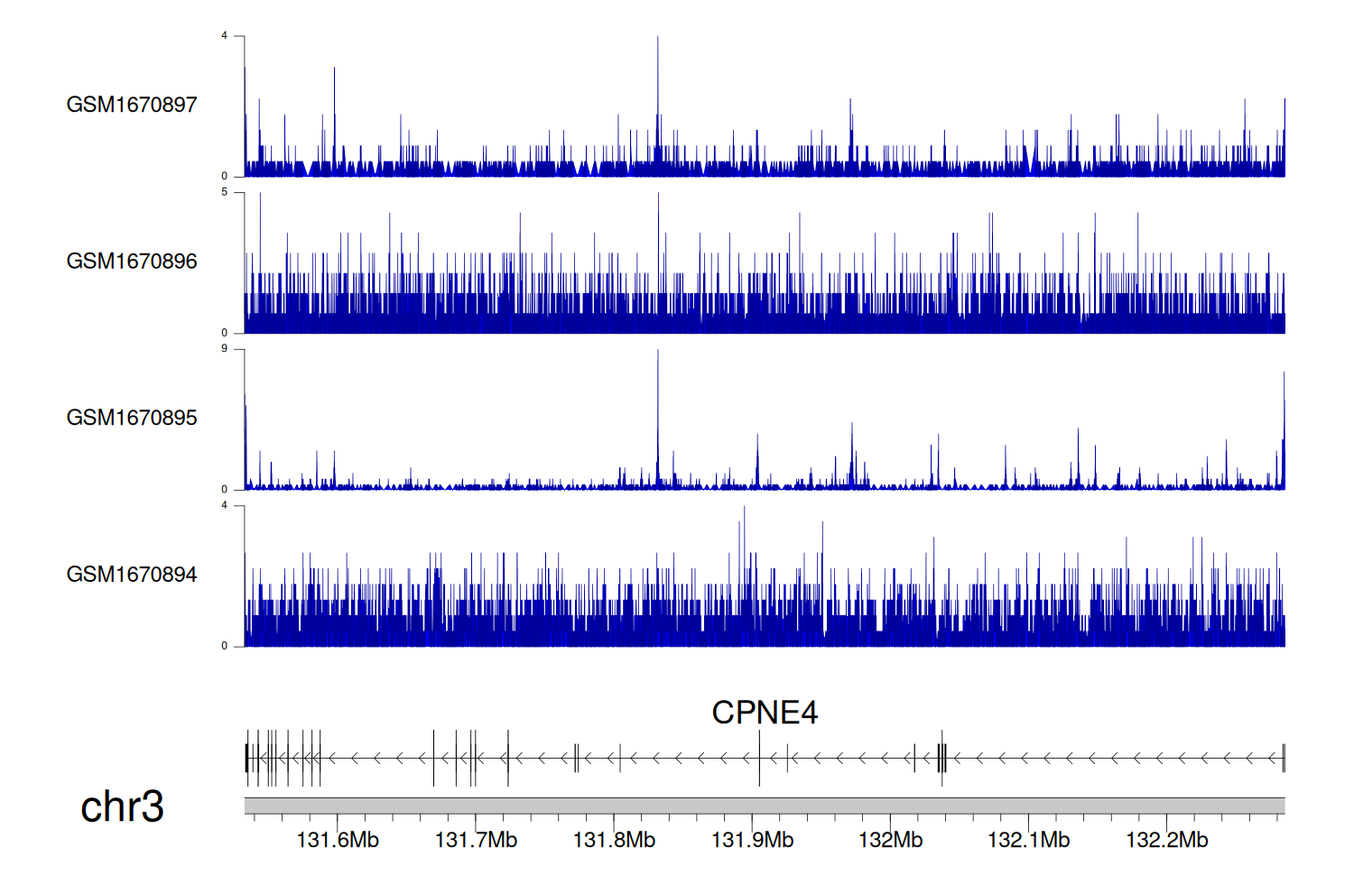 > Dataset: GSE68402 - CPNE4 peak across samples