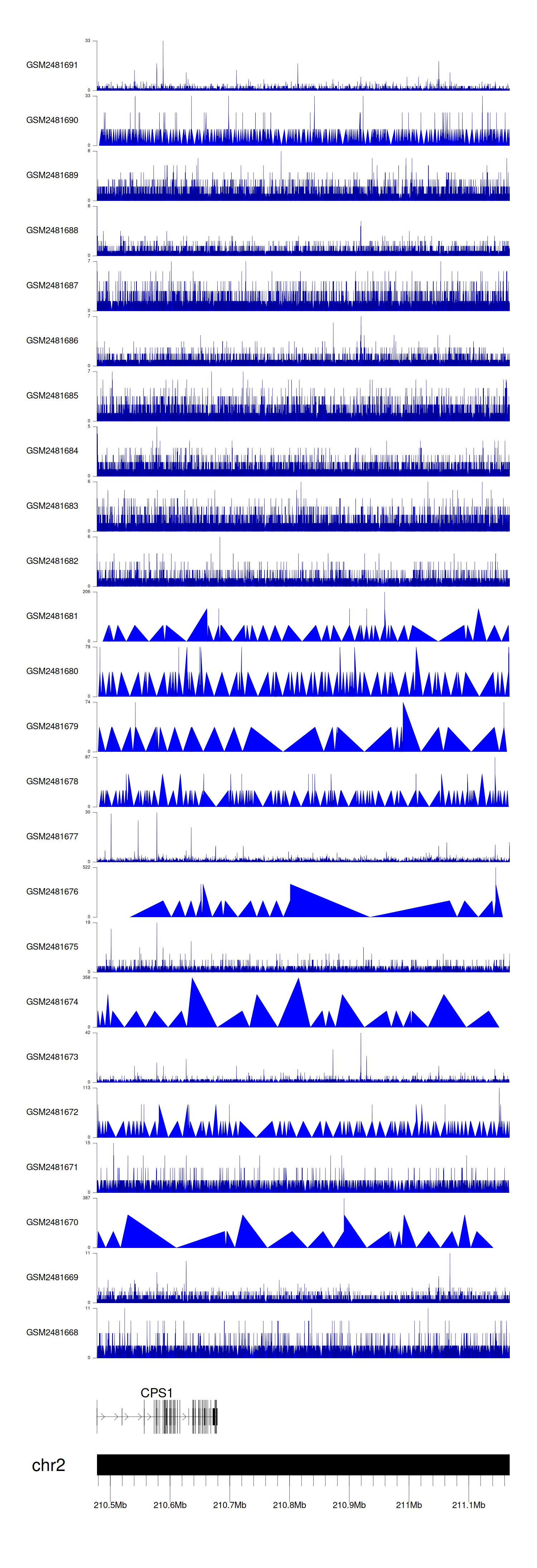 > Dataset: GSE94732 - CPS1 peak across samples