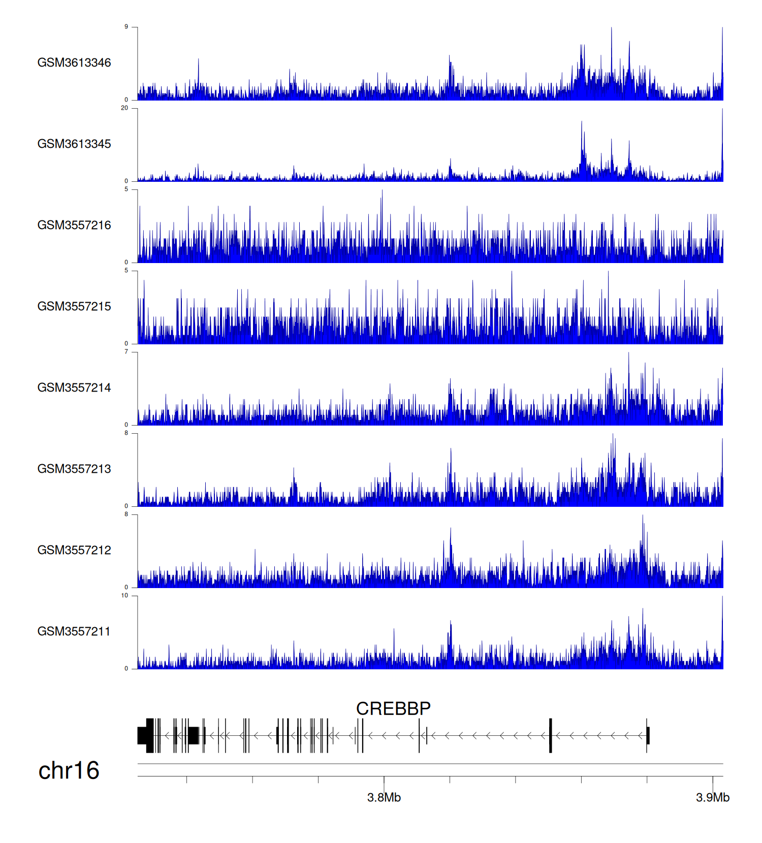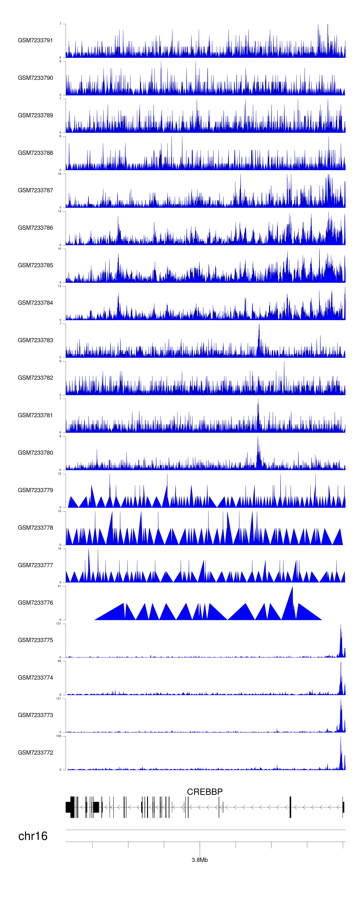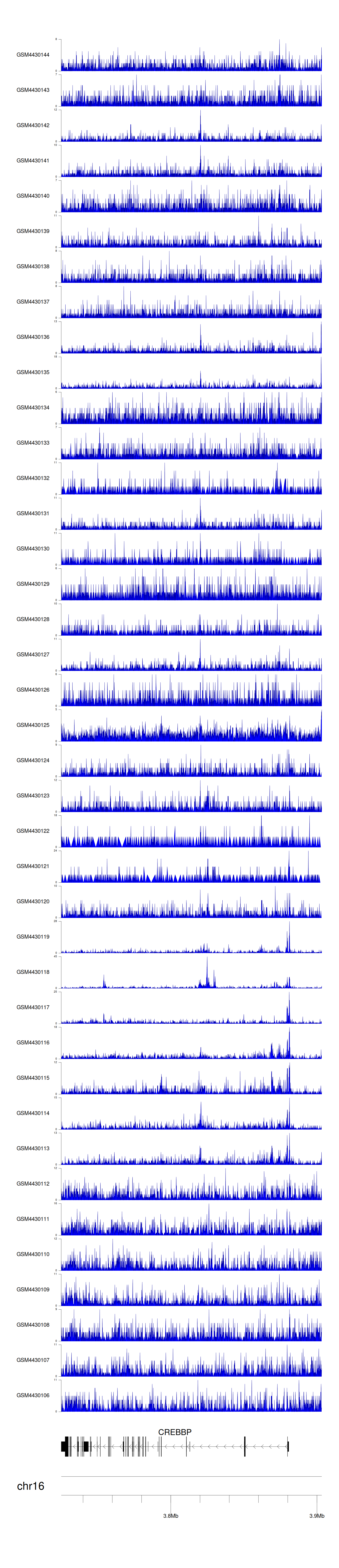 This gene is ubiquitously expressed and is involved in the transcriptional coactivation of many different transcription factors. First isolated as a nuclear protein that binds to cAMP-response element binding protein (CREB), this gene is now known to play critical roles in embryonic development, growth control, and homeostasis by coupling chromatin remodeling to transcription factor recognition. The protein encoded by this gene has intrinsic histone acetyltransferase activity and also acts as a scaffold to stabilize additional protein interactions with the transcription complex. This protein acetylates both histone and non-histone proteins. This protein shares regions of very high sequence similarity with protein p300 in its bromodomain, cysteine-histidine-rich regions, and histone acetyltransferase domain. Mutations in this gene cause Rubinstein-Taybi syndrome (RTS). Chromosomal translocations involving this gene have been associated with acute myeloid leukemia. Alternative splicing results in multiple transcript variants encoding different isoforms. [provided by RefSeq, Feb 2009] |