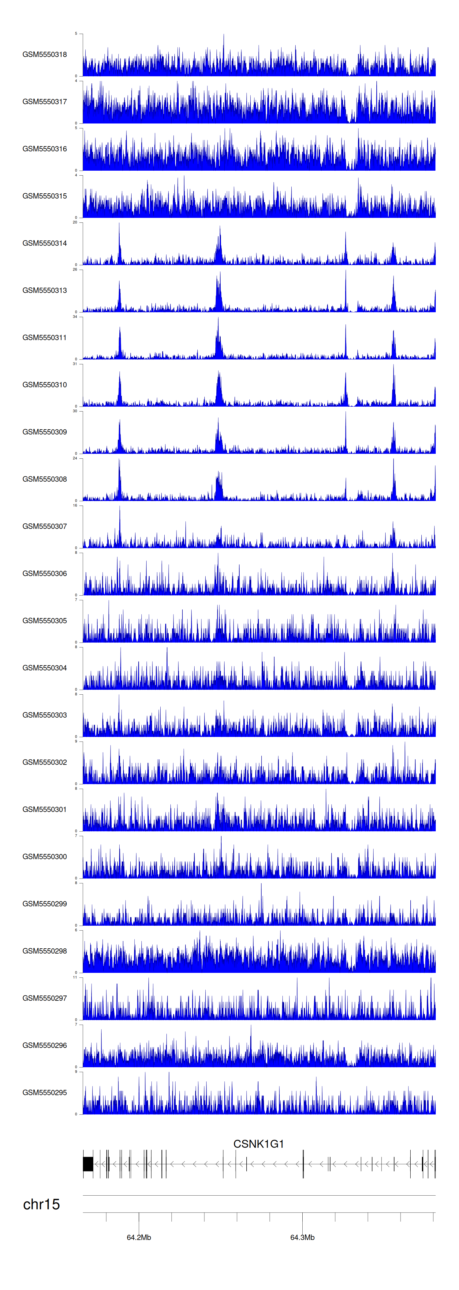 > Dataset: GSE143026 - CSNK1G1 peak across samples
