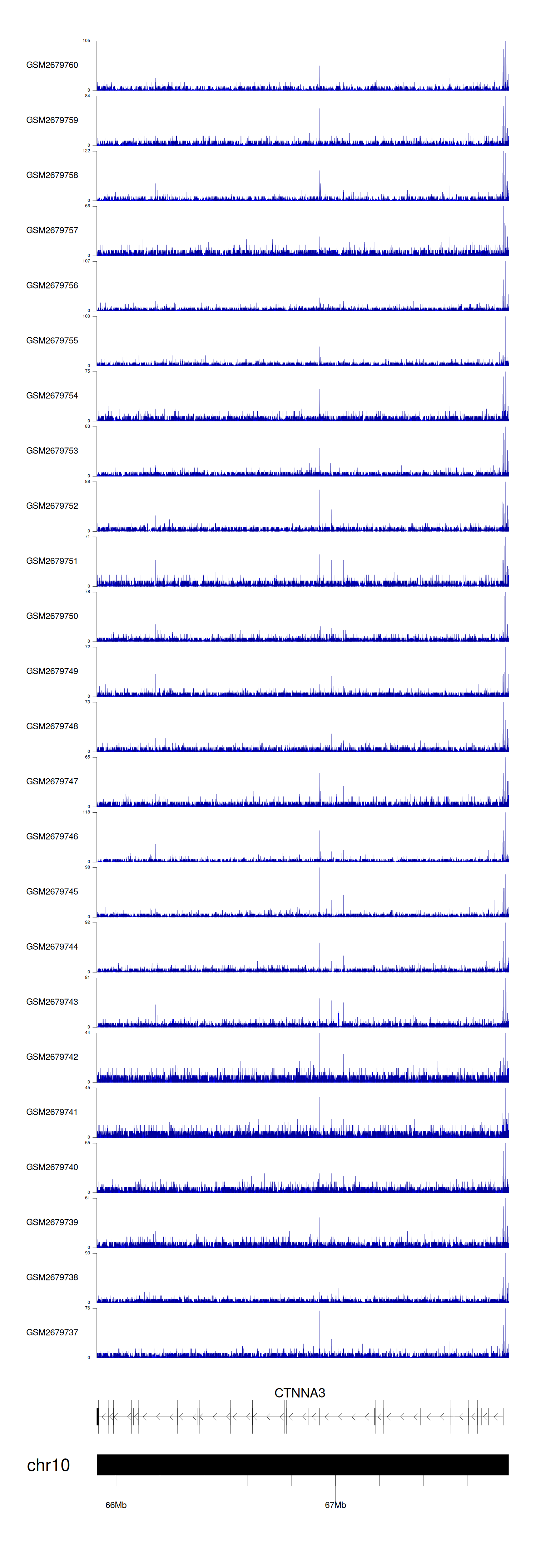 > Dataset: GSE100266 - CTNNA3 peak across samples