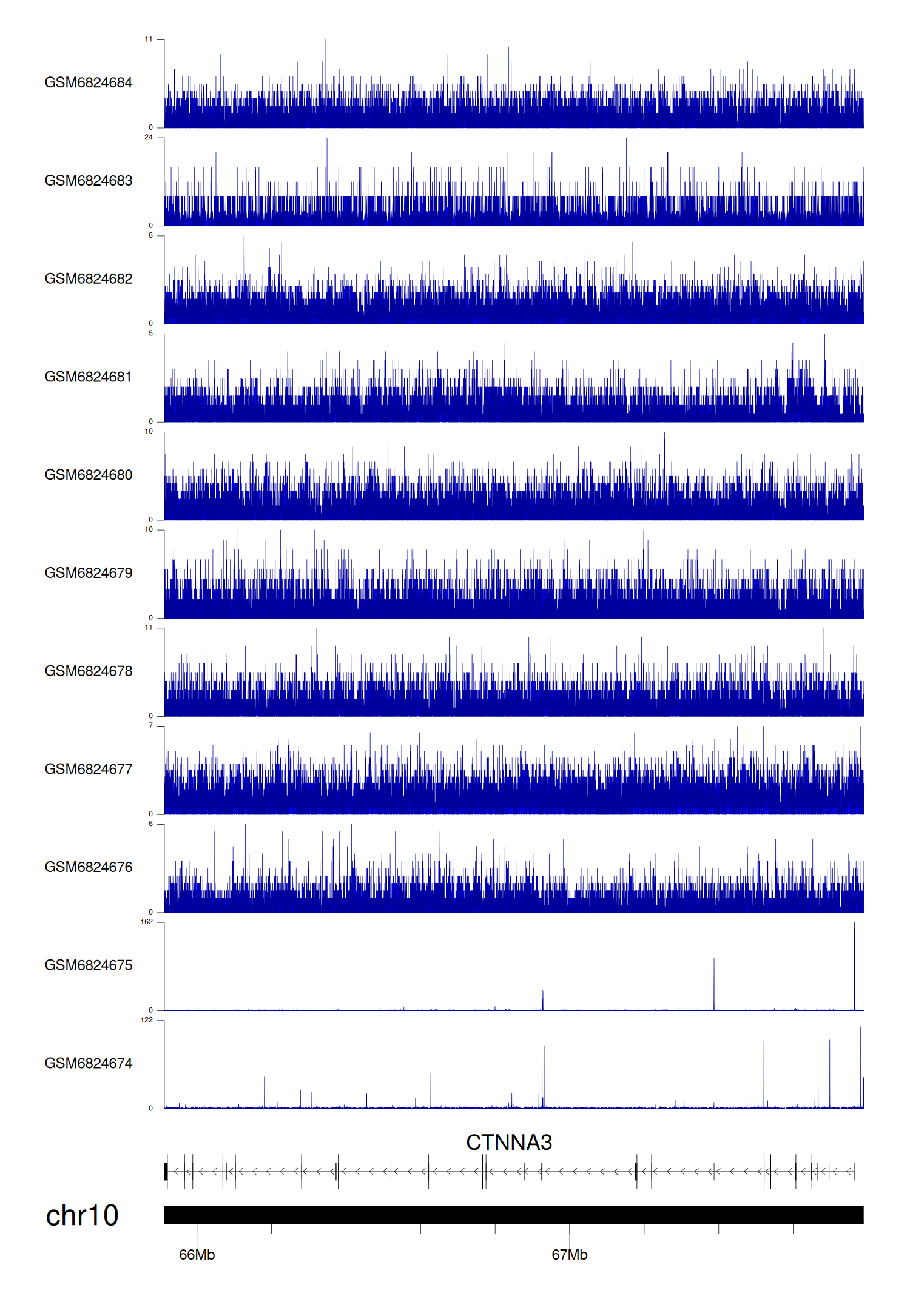 > Dataset: GSE165703 - CTNNA3 peak across samples