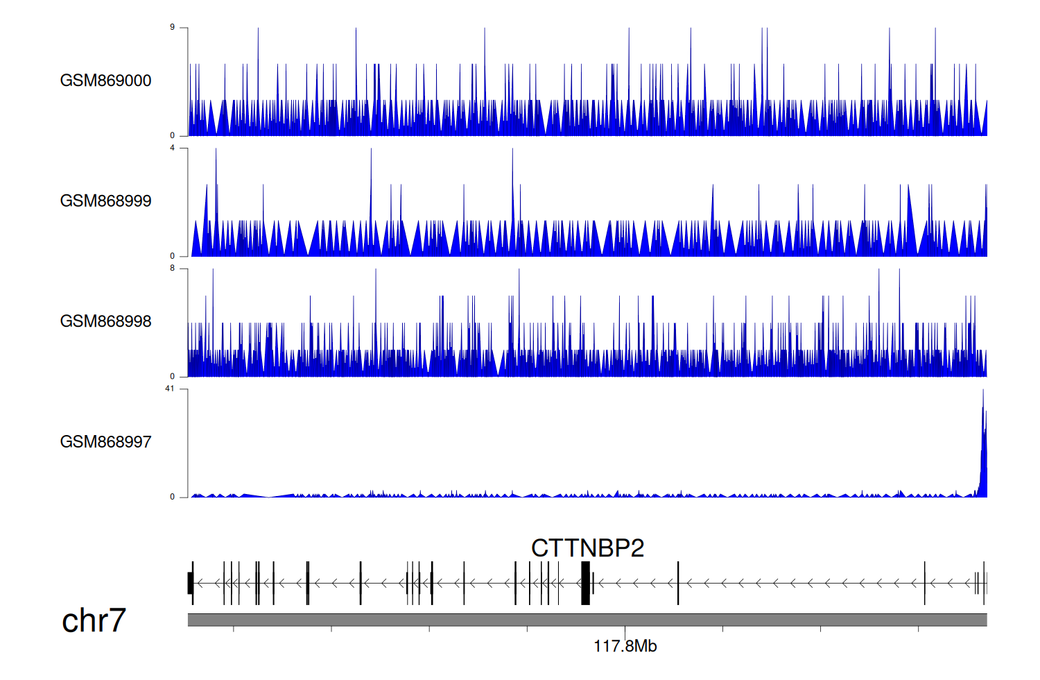> Dataset: GSE68402 - CTTNBP2 peak across samples