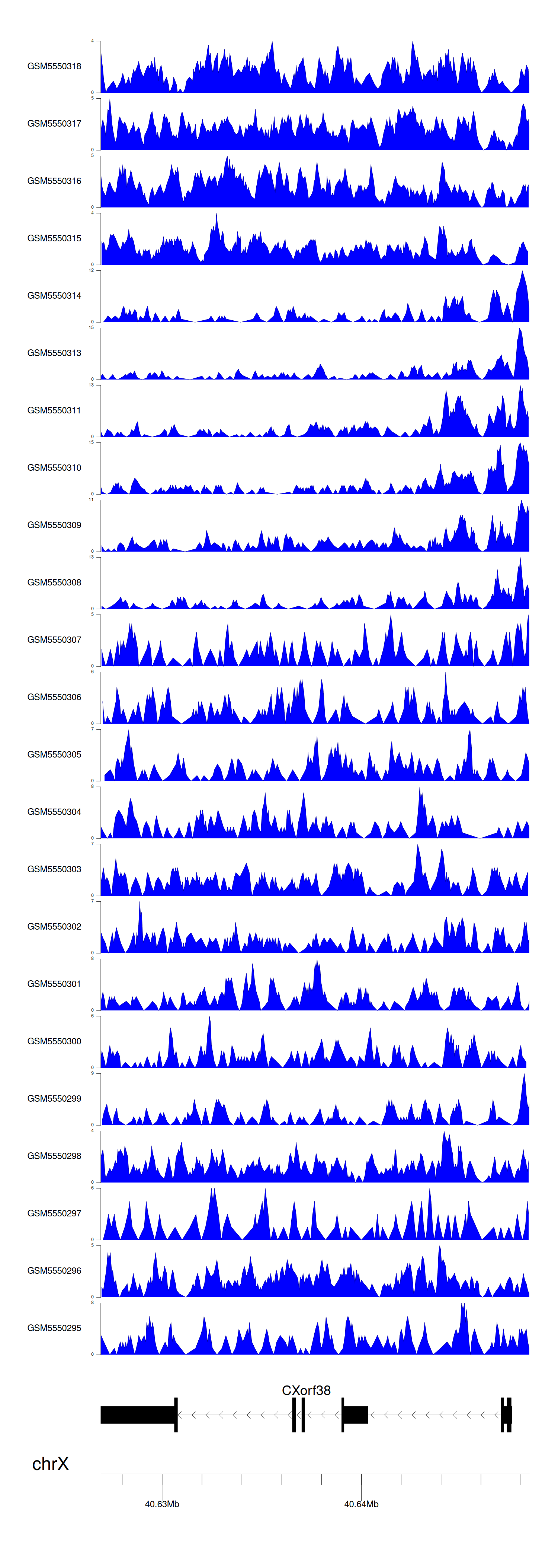 > Dataset: GSE143026 - CXorf38 peak across samples