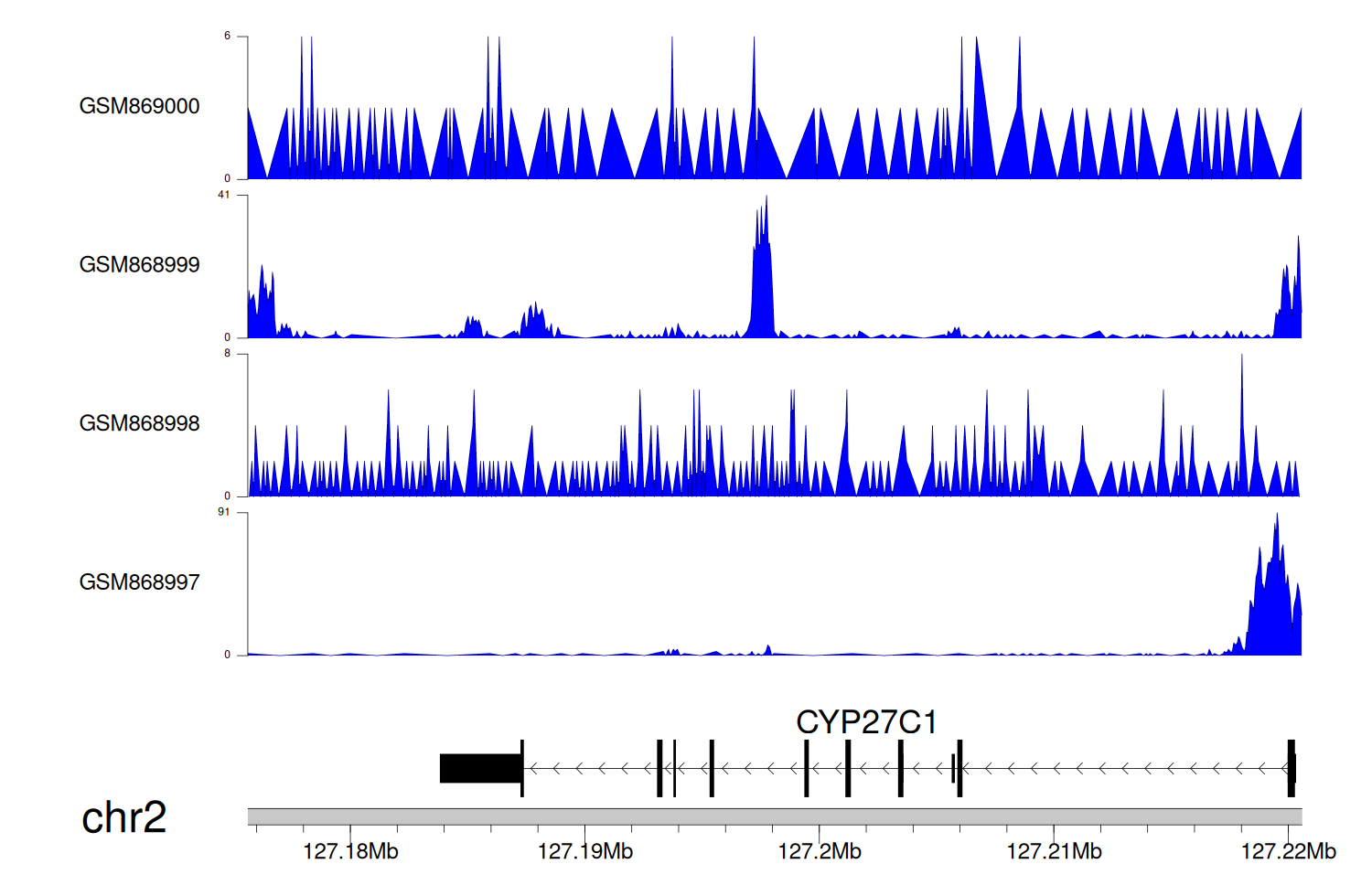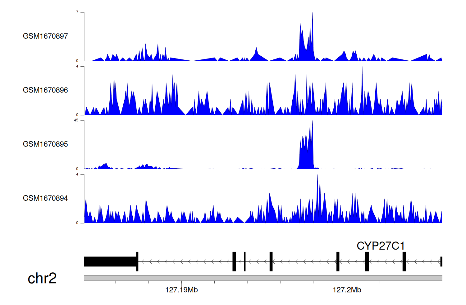 > Dataset: GSE68402 - CYP27C1 peak across samples
