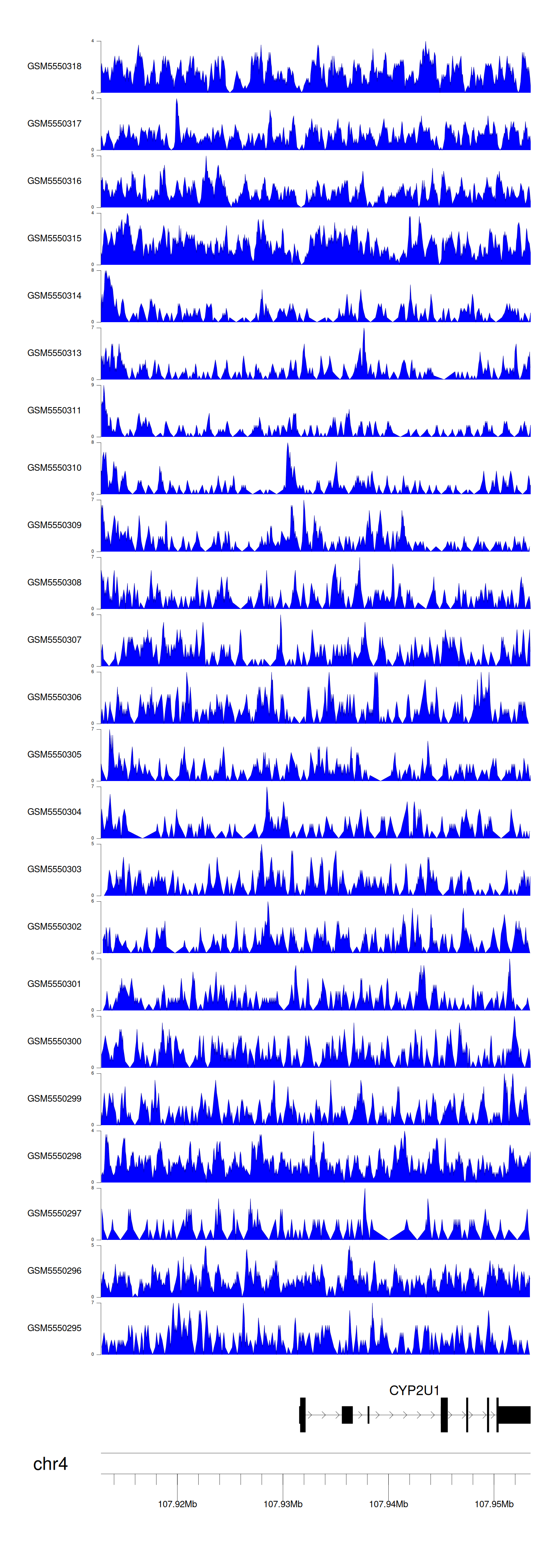 > Dataset: GSE143026 - CYP2U1 peak across samples
