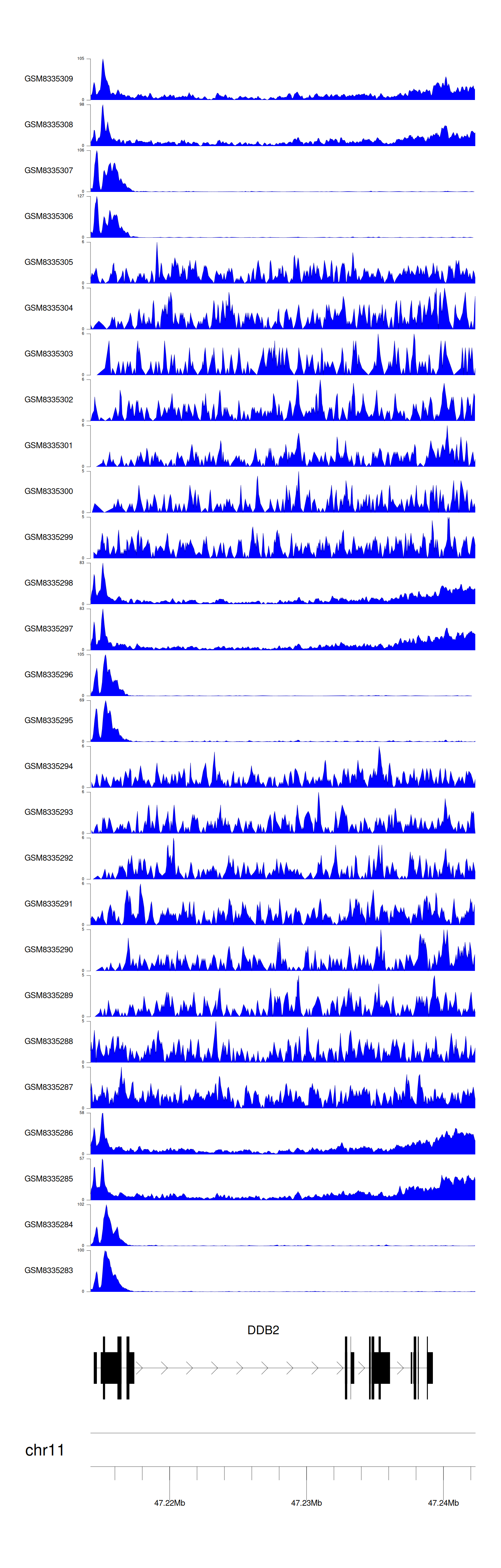 Summary This gene encodes a protein that is necessary for the repair of ultraviolet light-damaged DNA. This protein is the smaller subunit of a heterodimeric protein complex that participates in nucleotide excision repair, and this complex mediates the ubiquitylation of histones H3 and H4, which facilitates the cellular response to DNA damage. This subunit appears to be required for DNA binding. Mutations in this gene cause xeroderma pigmentosum complementation group E, a recessive disease that is characterized by an increased sensitivity to UV light and a high predisposition for skin cancer development, in some cases accompanied by neurological abnormalities. Two transcript variants encoding different isoforms have been found for this gene. [provided by RefSeq, Jul 2014]