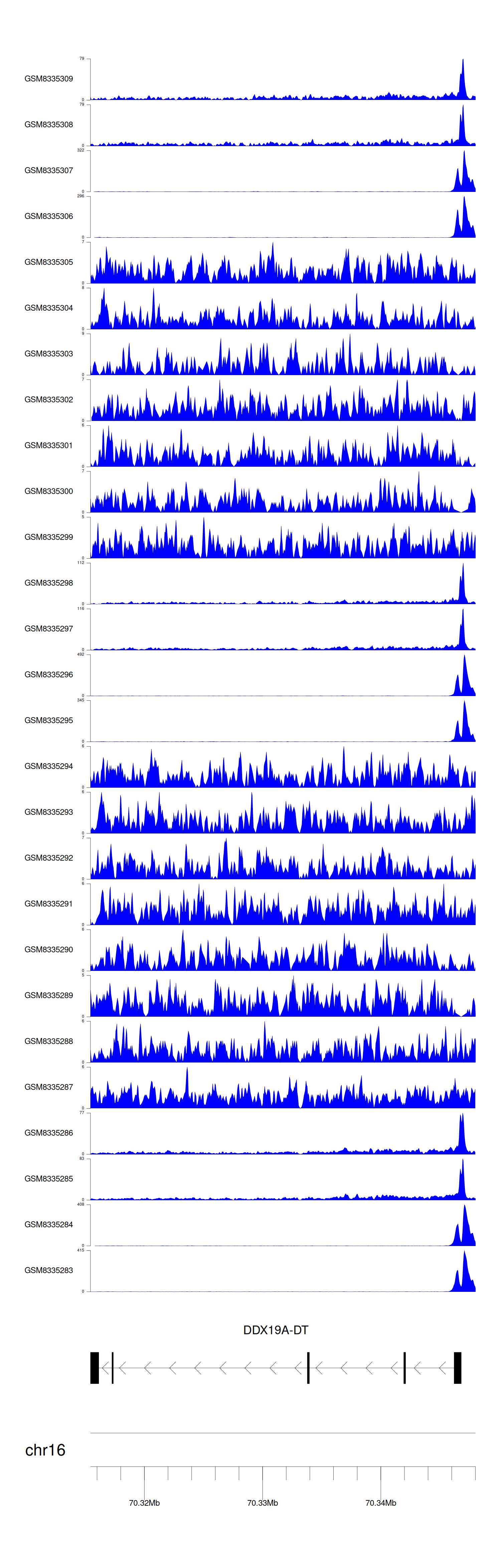 > Dataset: GSE270130 - DDX19A-DT peak across samples