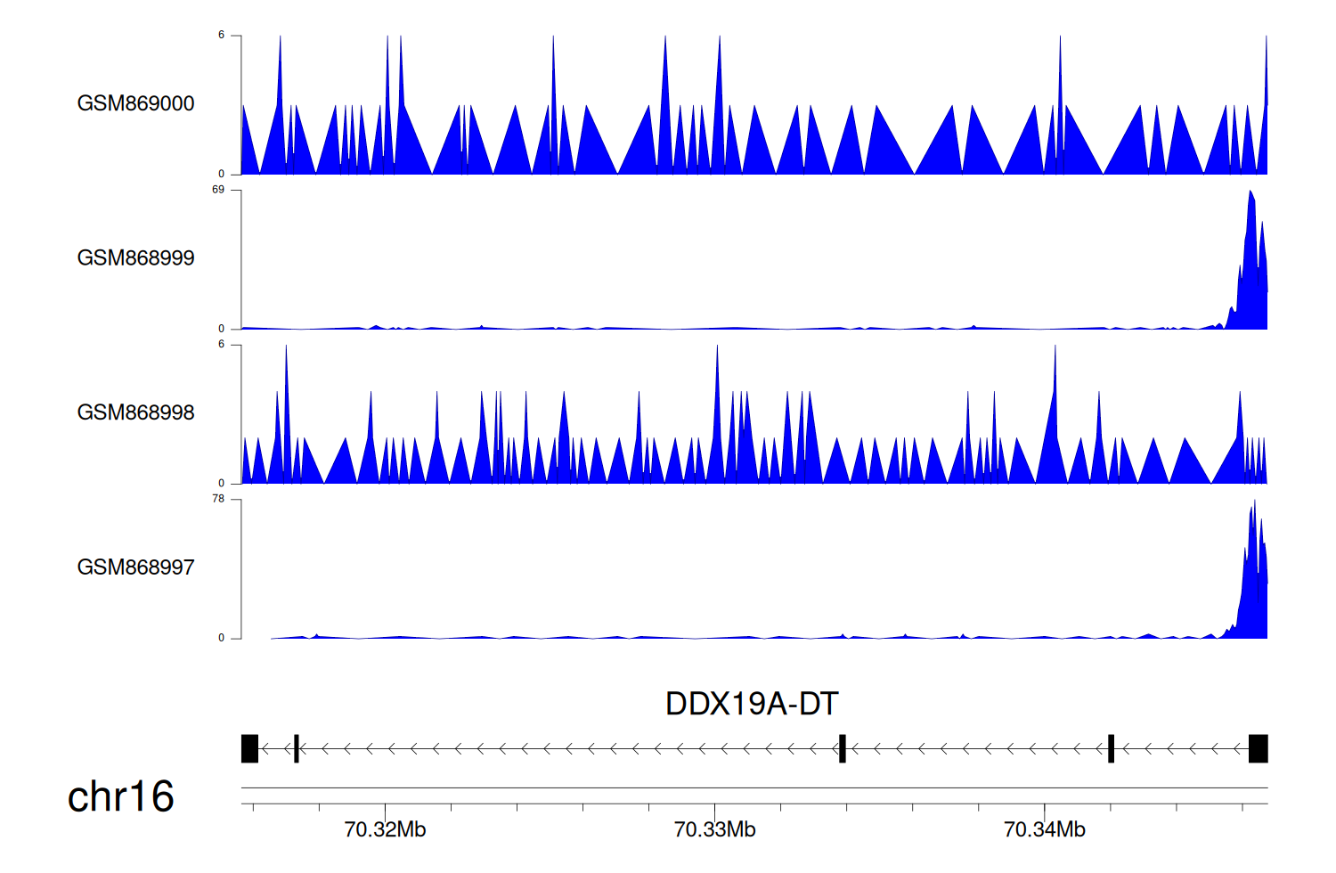 > Dataset: GSE68402 - DDX19A-DT peak across samples