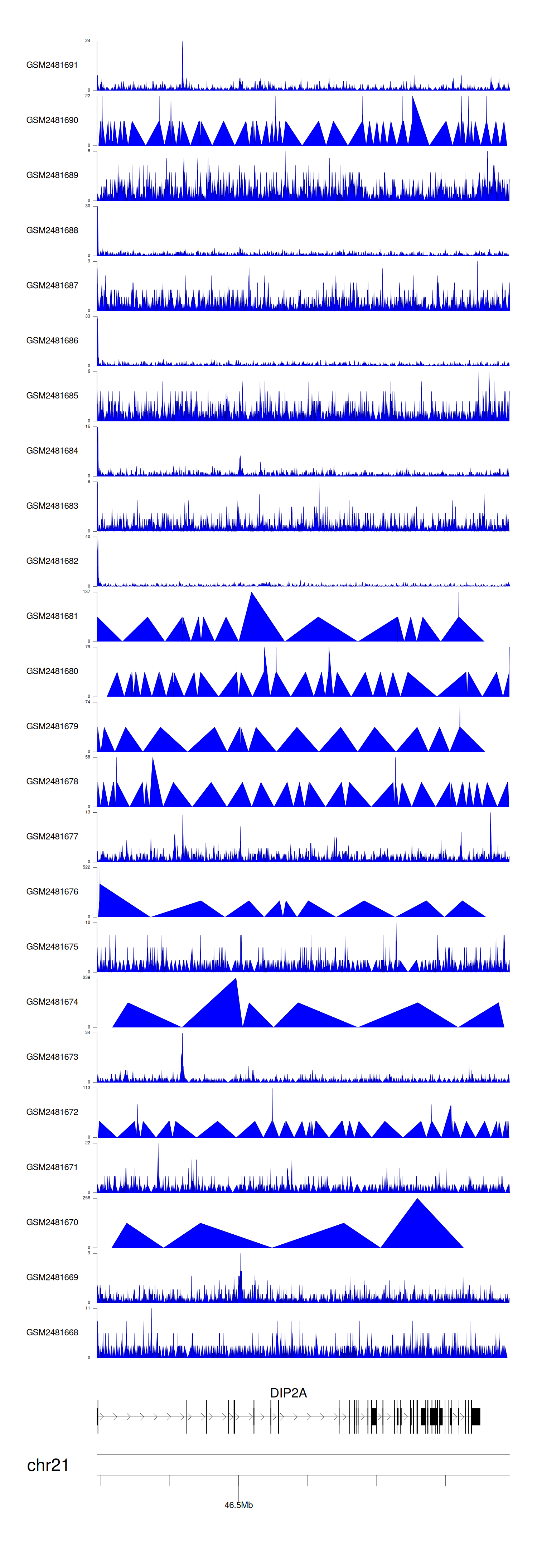 Target gene [DIP2A] related to VISs