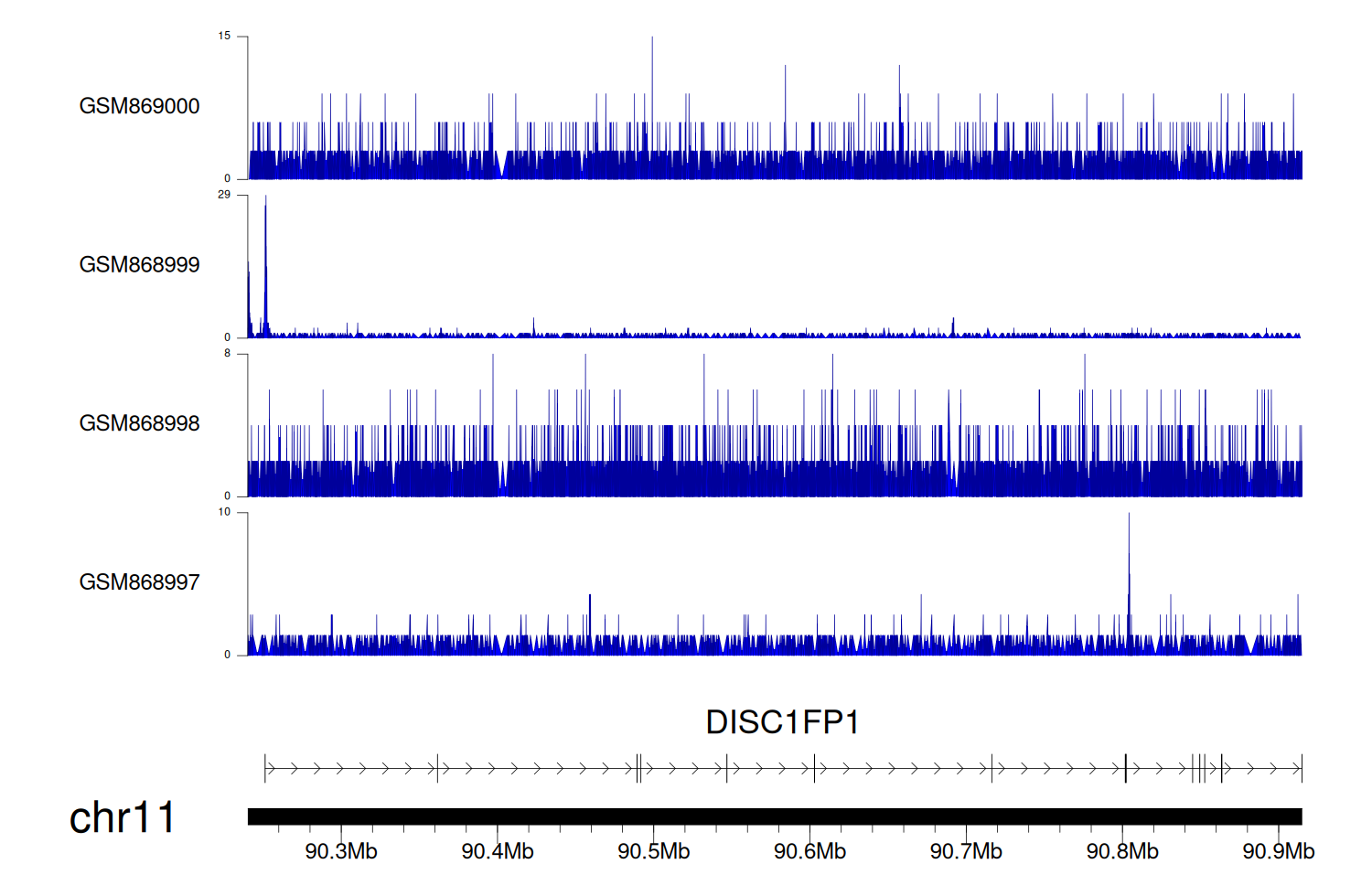 > Dataset: GSE68402 - DISC1FP1 peak across samples