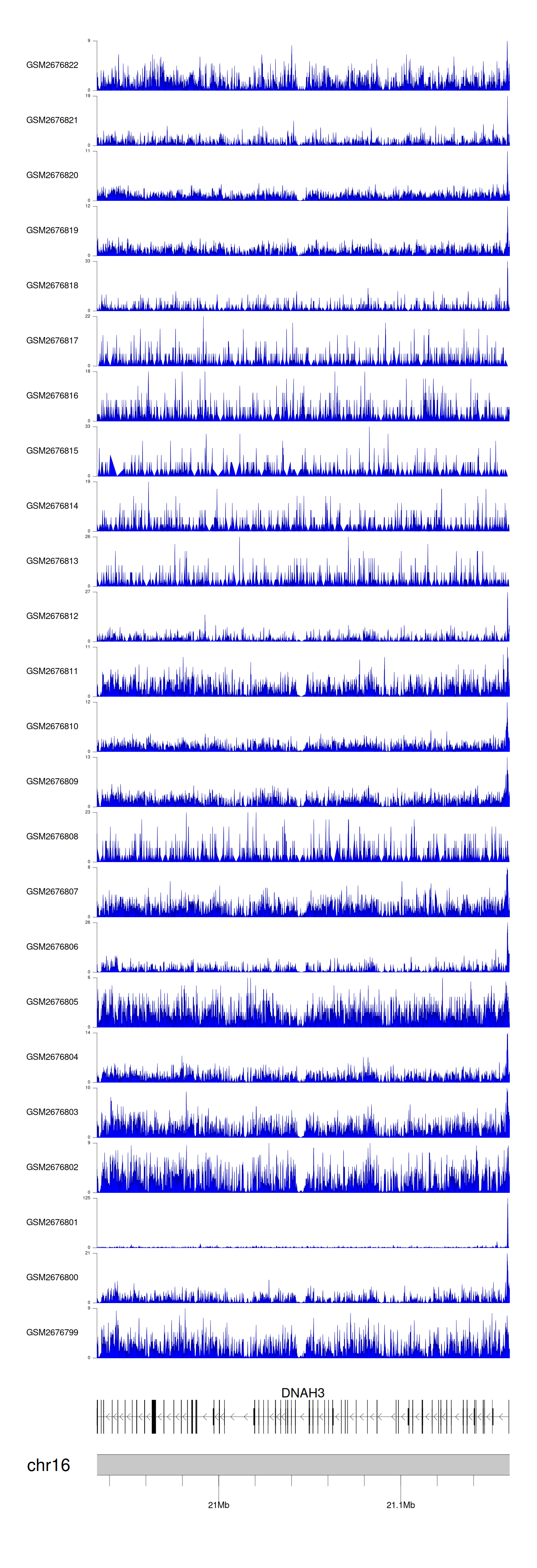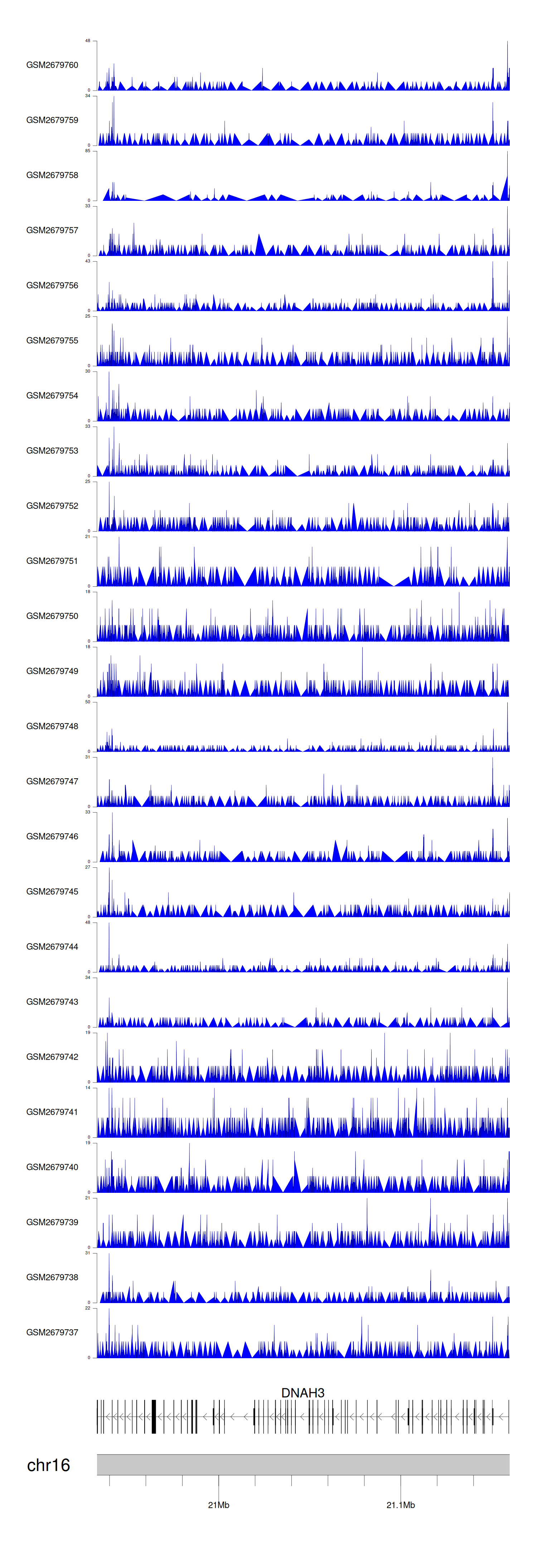 > Dataset: GSE100376 - DNAH3 peak across samples