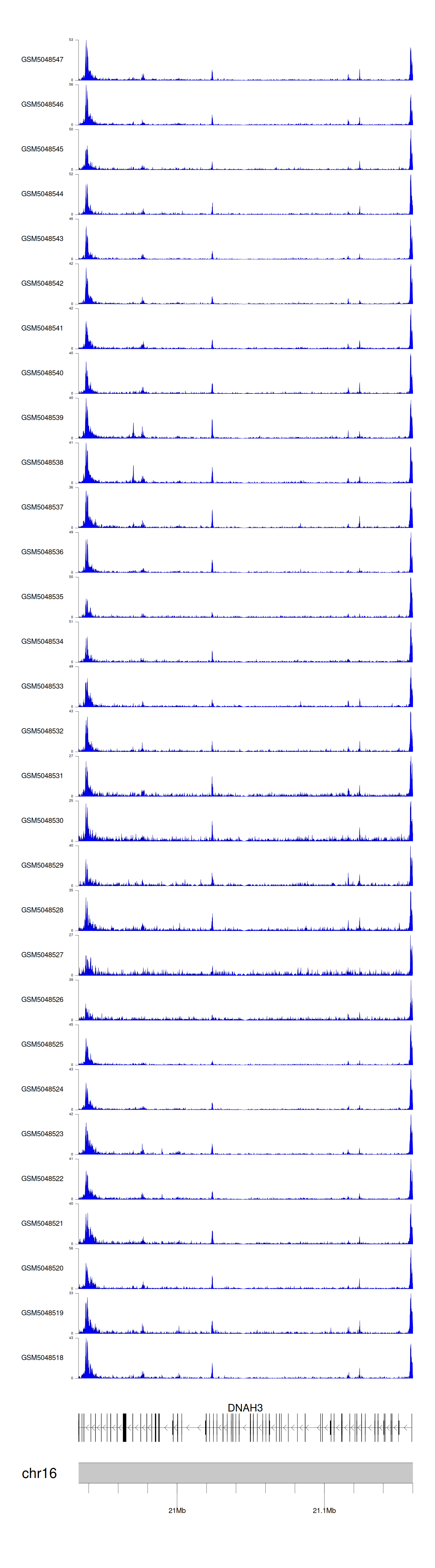 > Dataset: GSE30738 - DNAH3 peak across samples