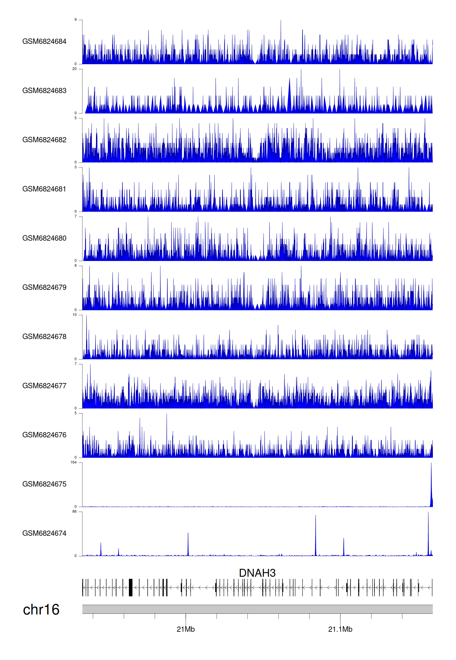 > Dataset: GSE165703 - DNAH3 peak across samples