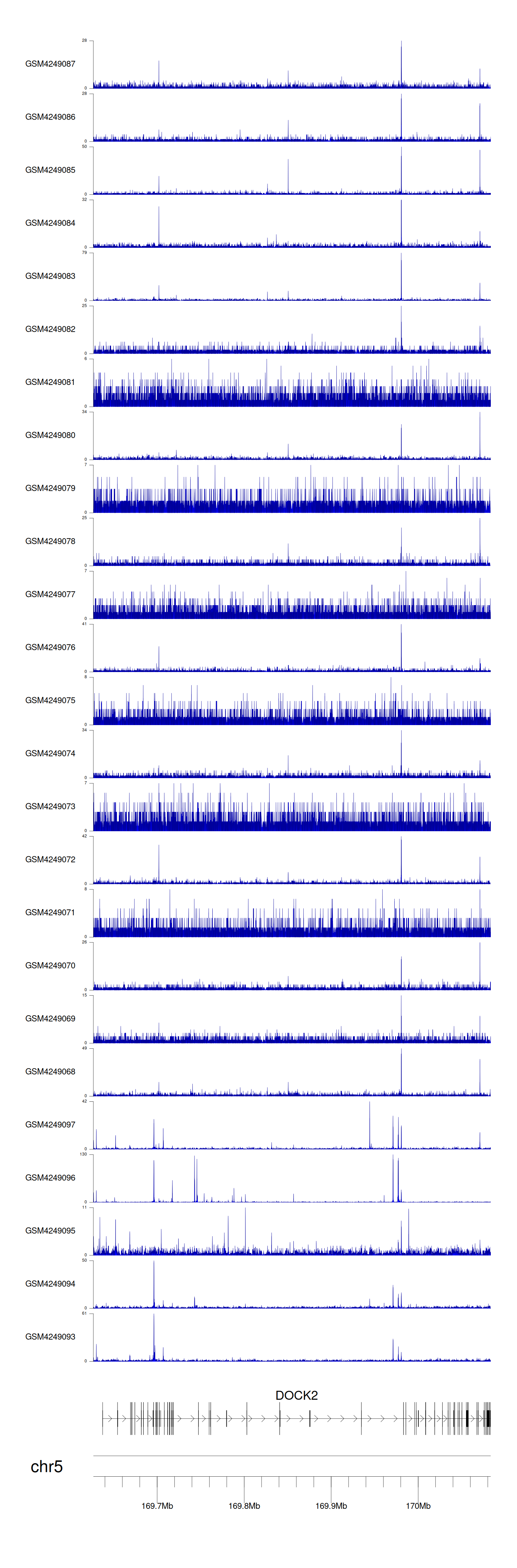> Dataset: GSE143026 - DOCK2 peak across samples