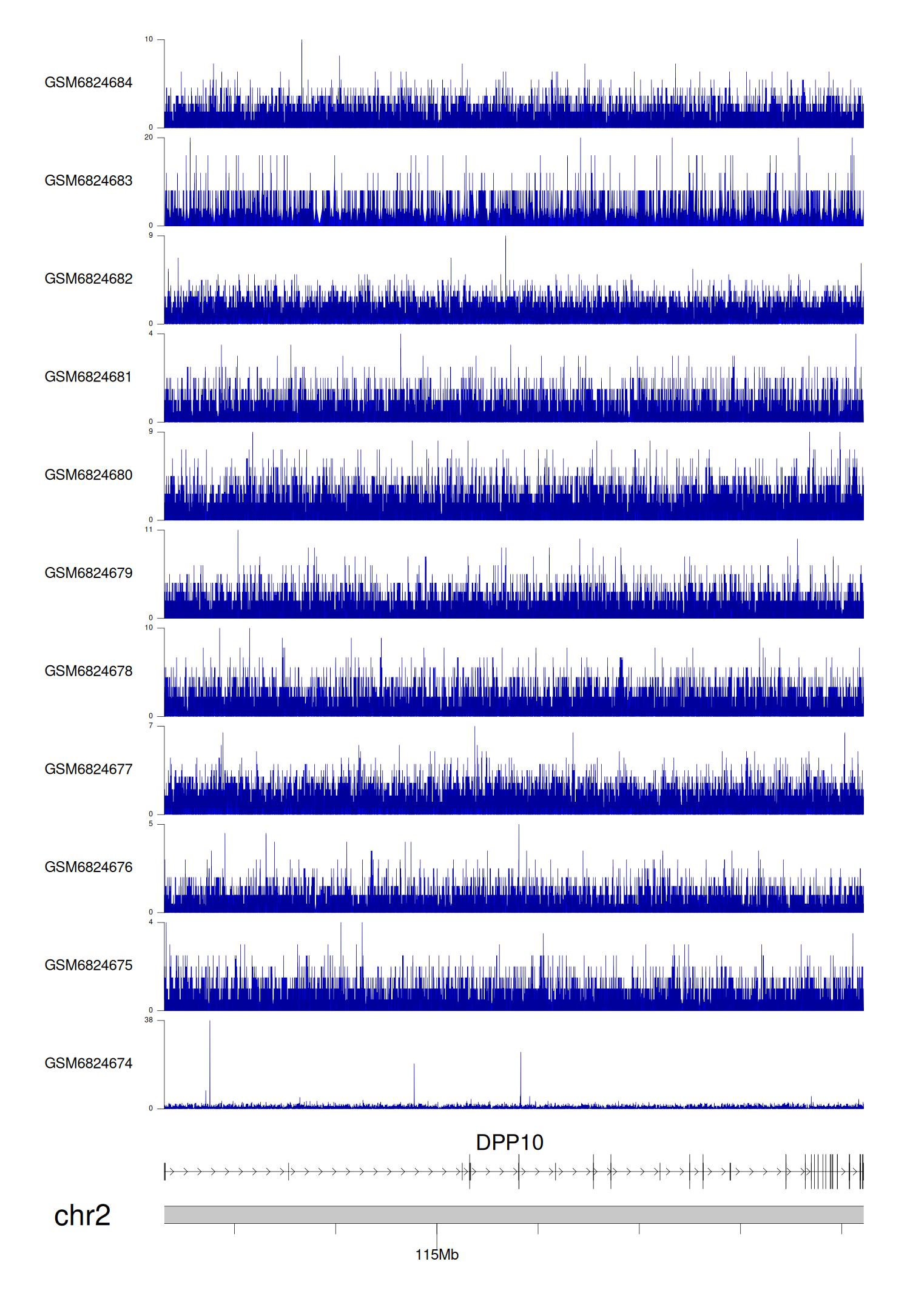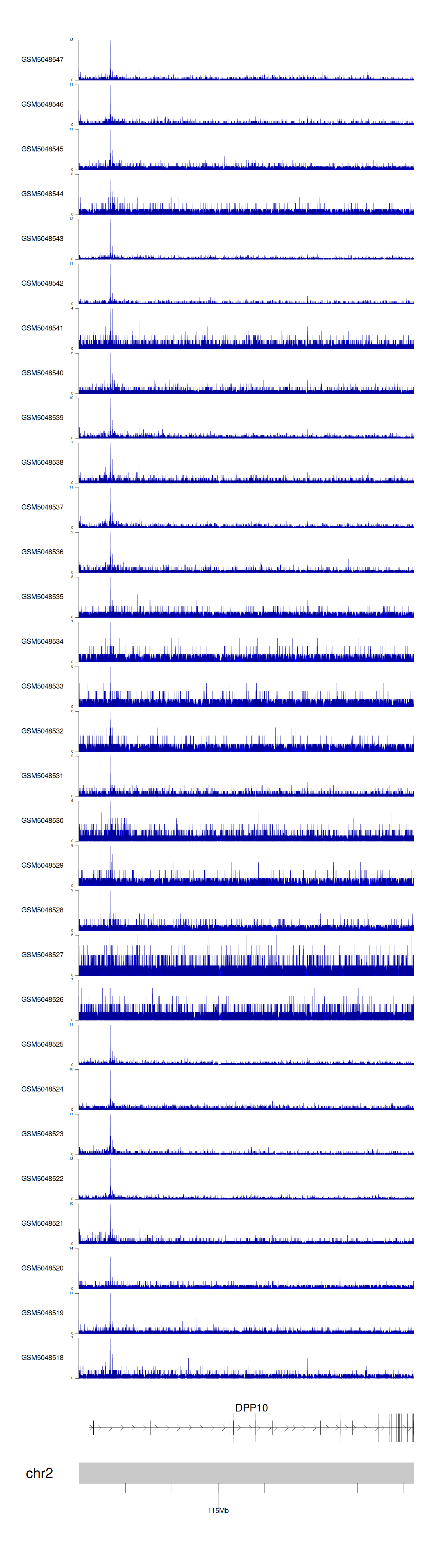 > Dataset: GSE220859 - DPP10 peak across samples