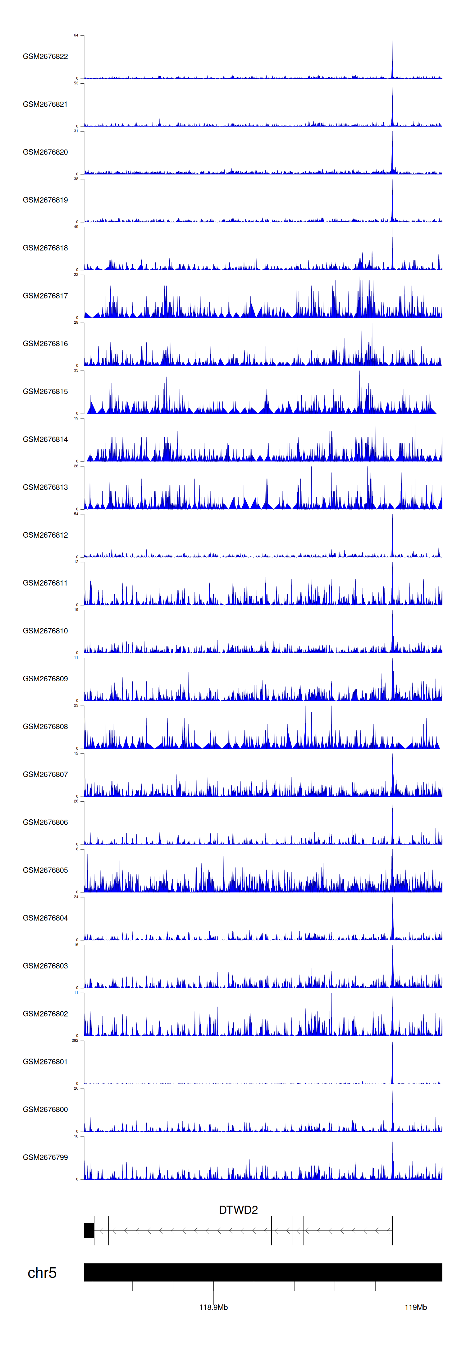 > Dataset: GSE100376 - DTWD2 peak across samples