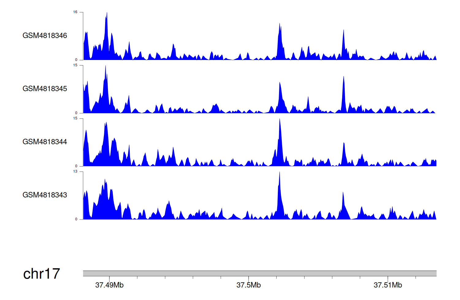 > Dataset: GSE131257 - DUSP14 peak across samples