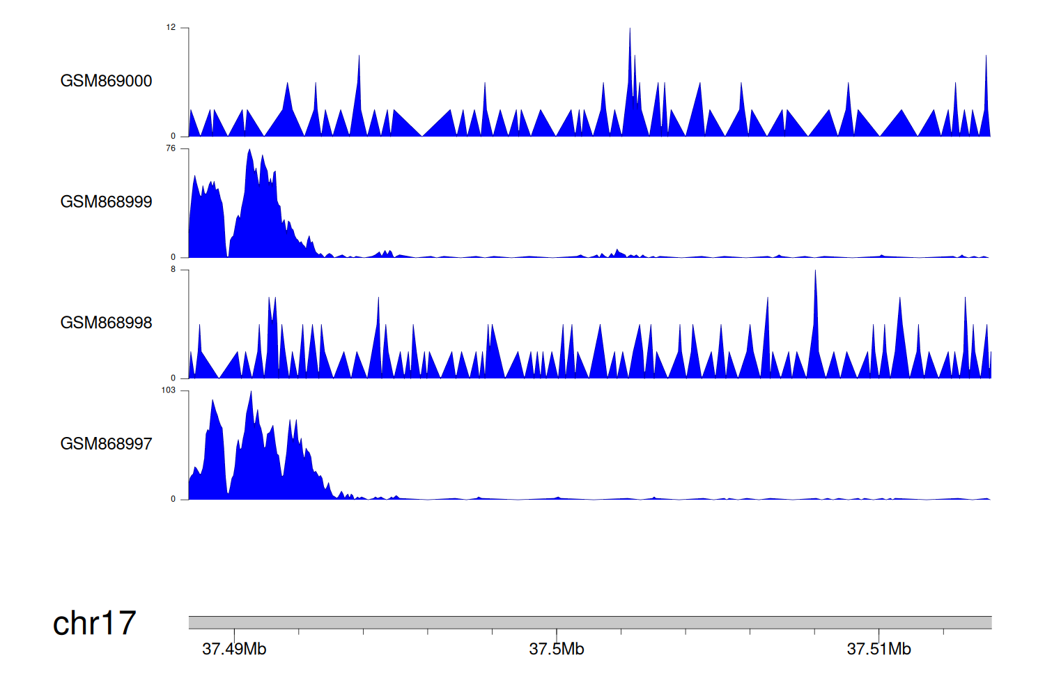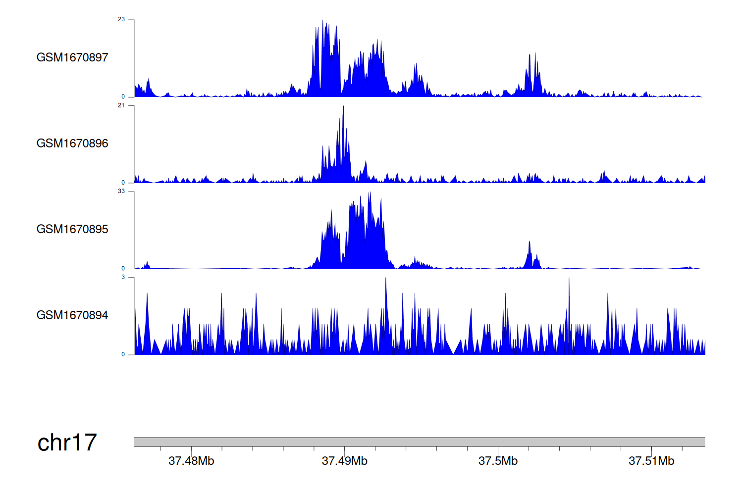 > Dataset: GSE68402 - DUSP14 peak across samples