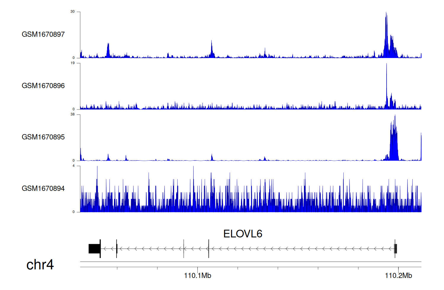 > Dataset: GSE68402 - ELOVL6 peak across samples