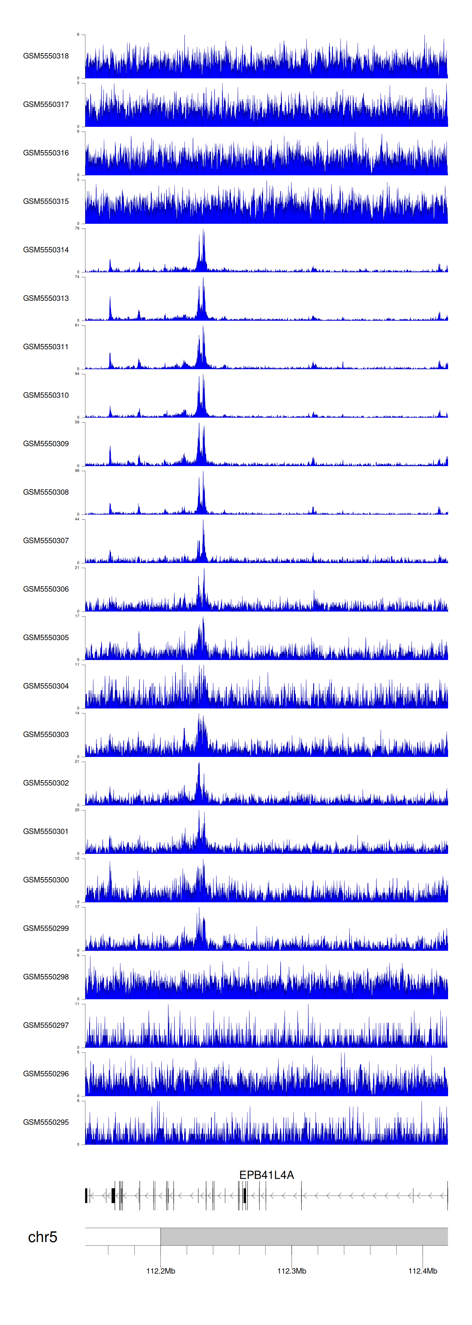 > Dataset: GSE143026 - EPB41L4A peak across samples