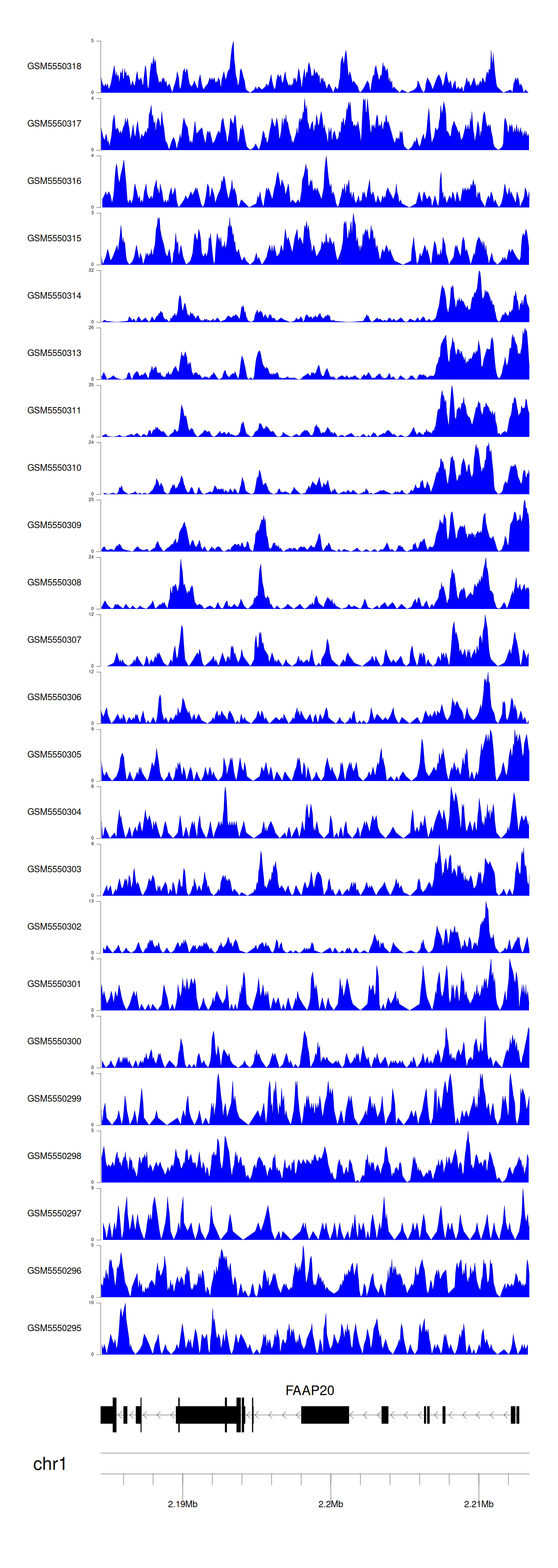 > Dataset: GSE183048 - FAAP20 peak across samples