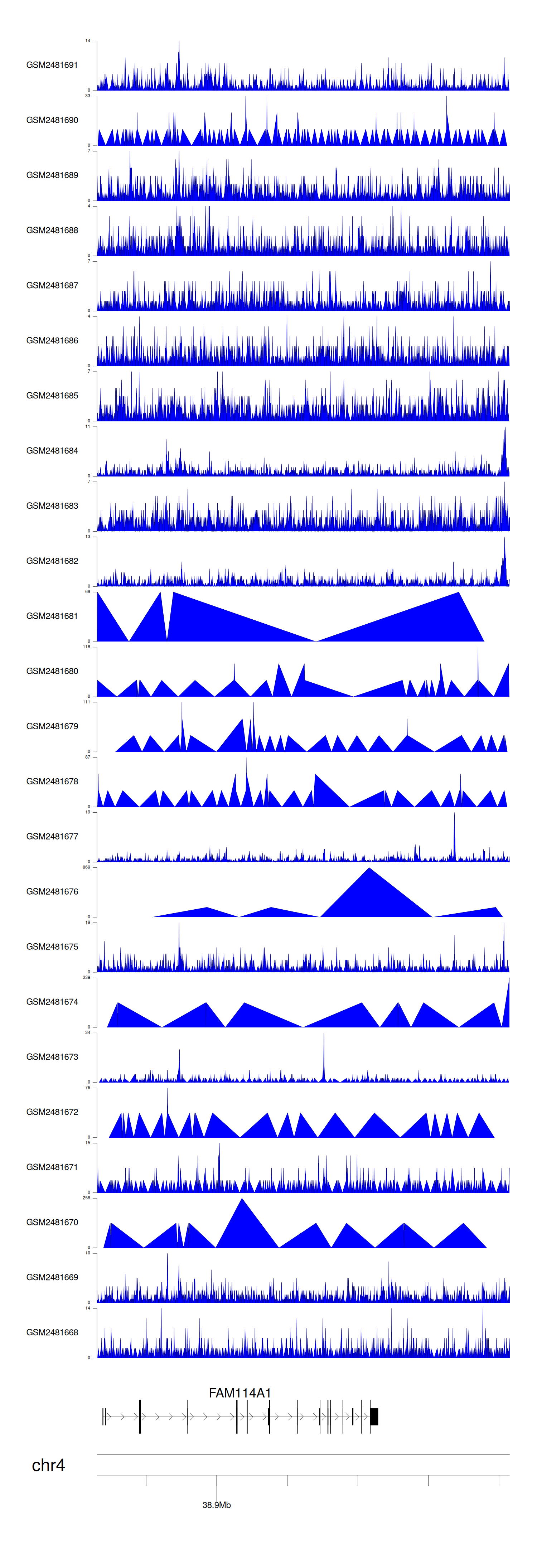 > Dataset: GSE94732 - FAM114A1 peak across samples