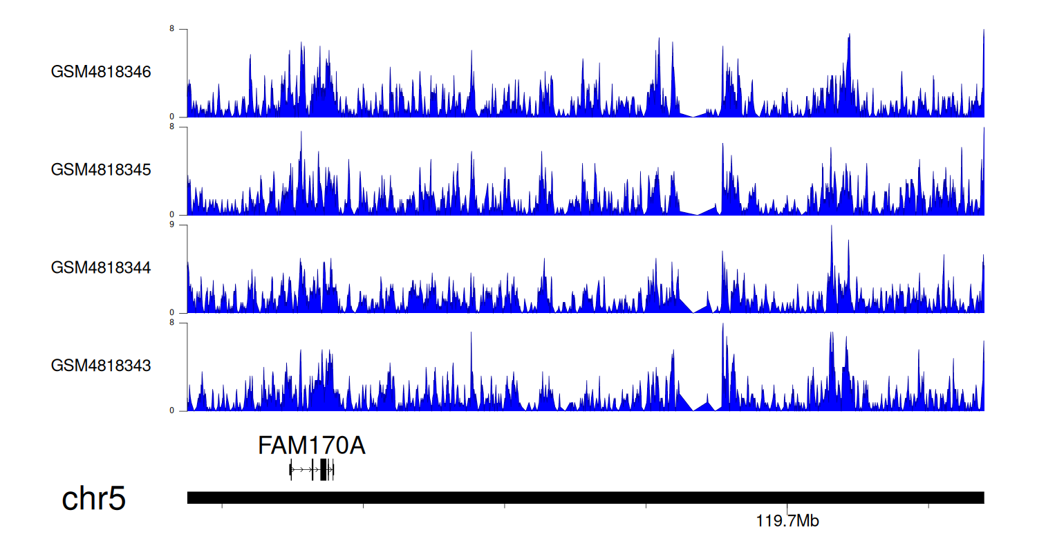 > Dataset: GSE131257 - FAM170A peak across samples