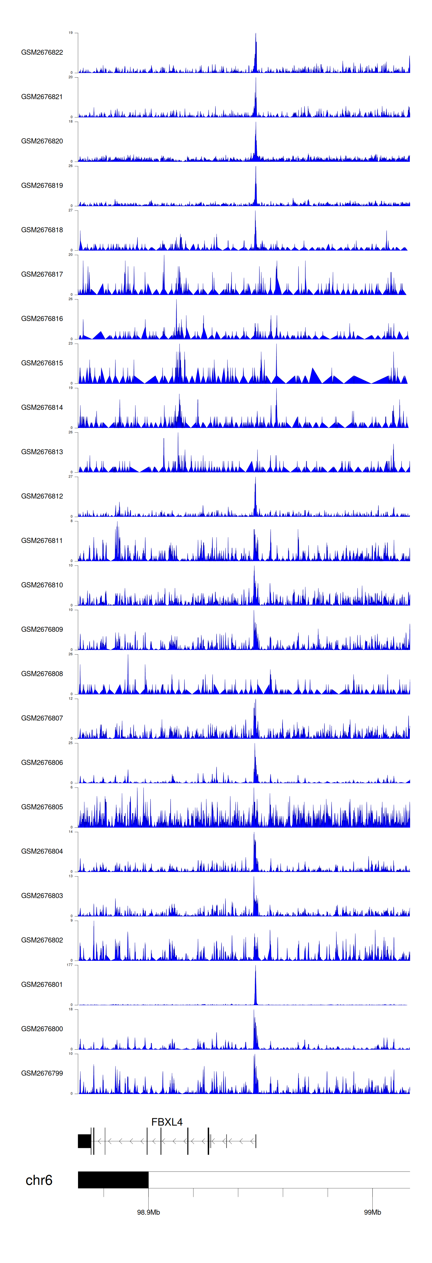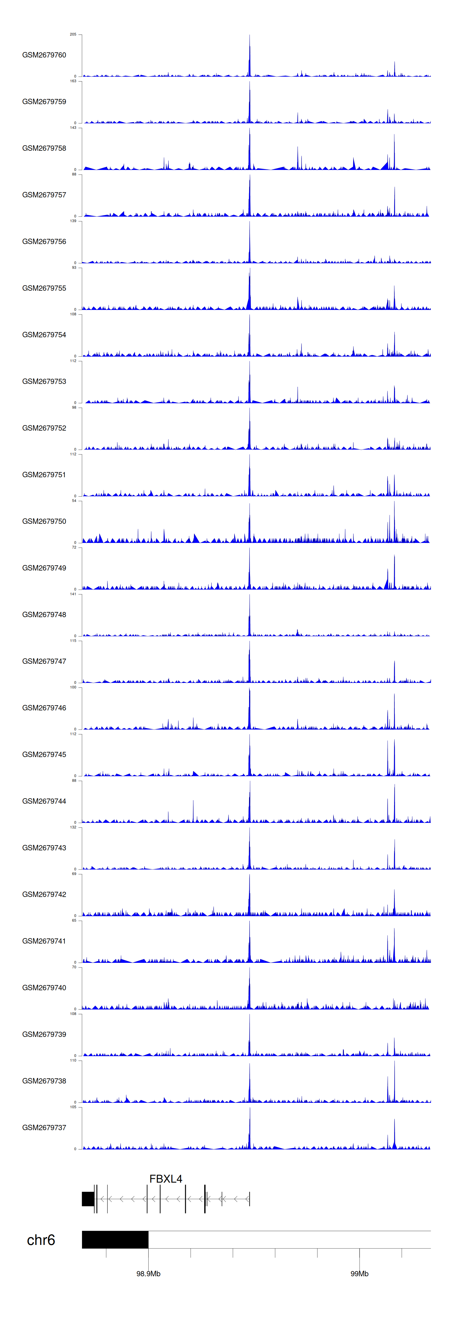 > Dataset: GSE100376 - FBXL4 peak across samples