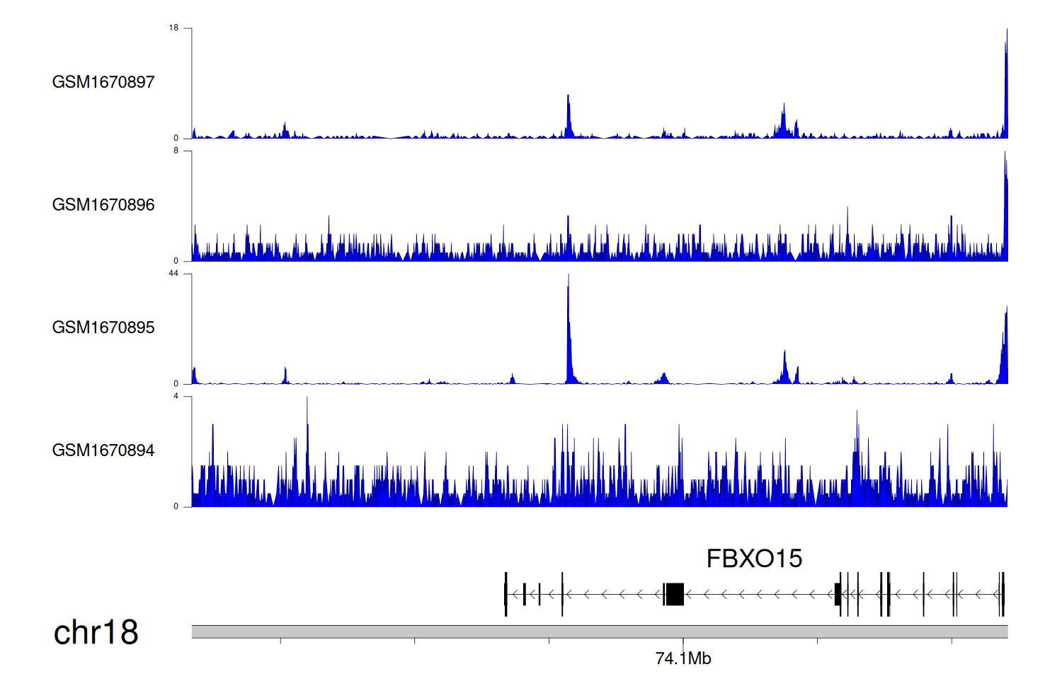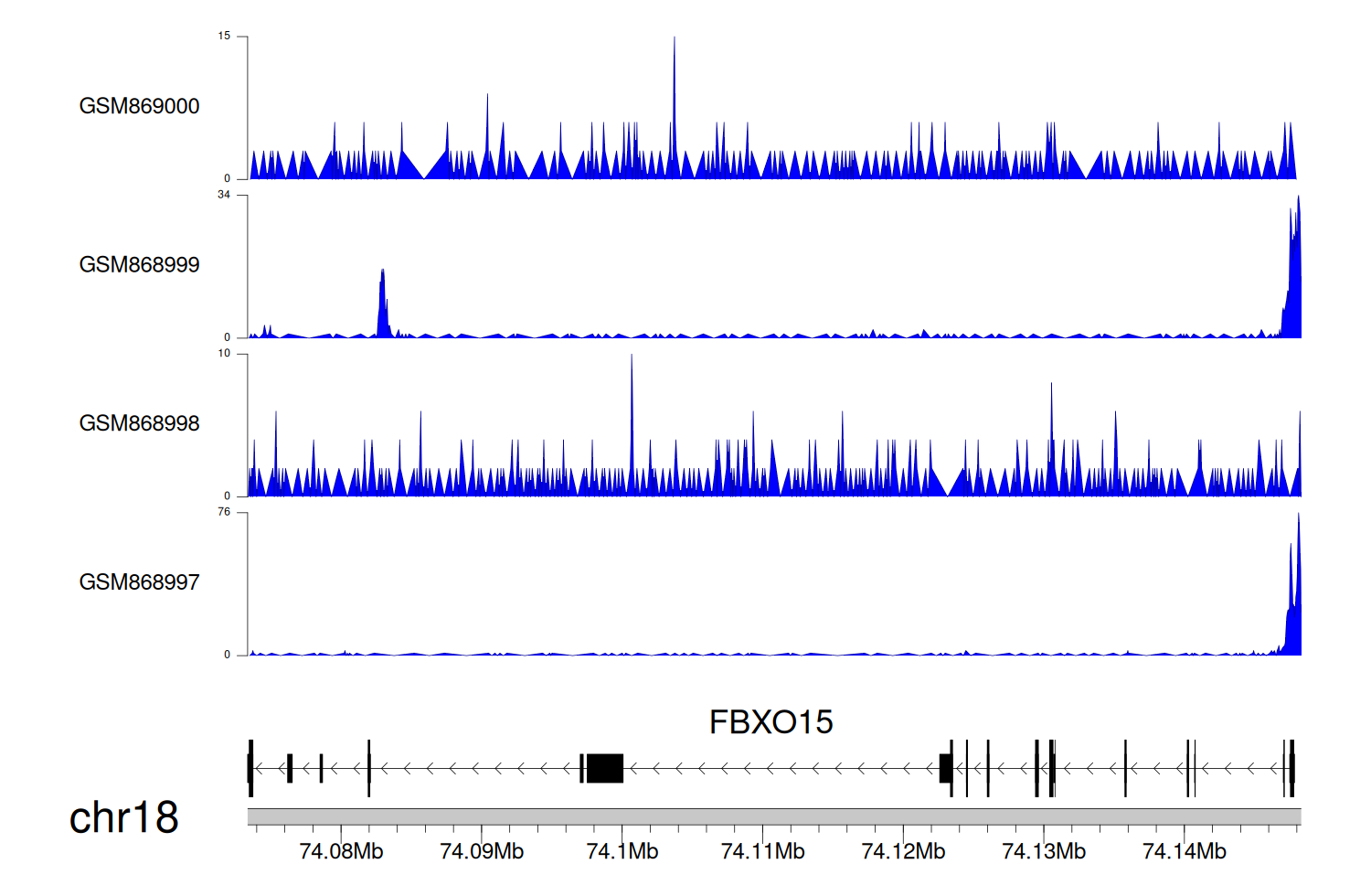 > Dataset: GSE68402 - FBXO15 peak across samples