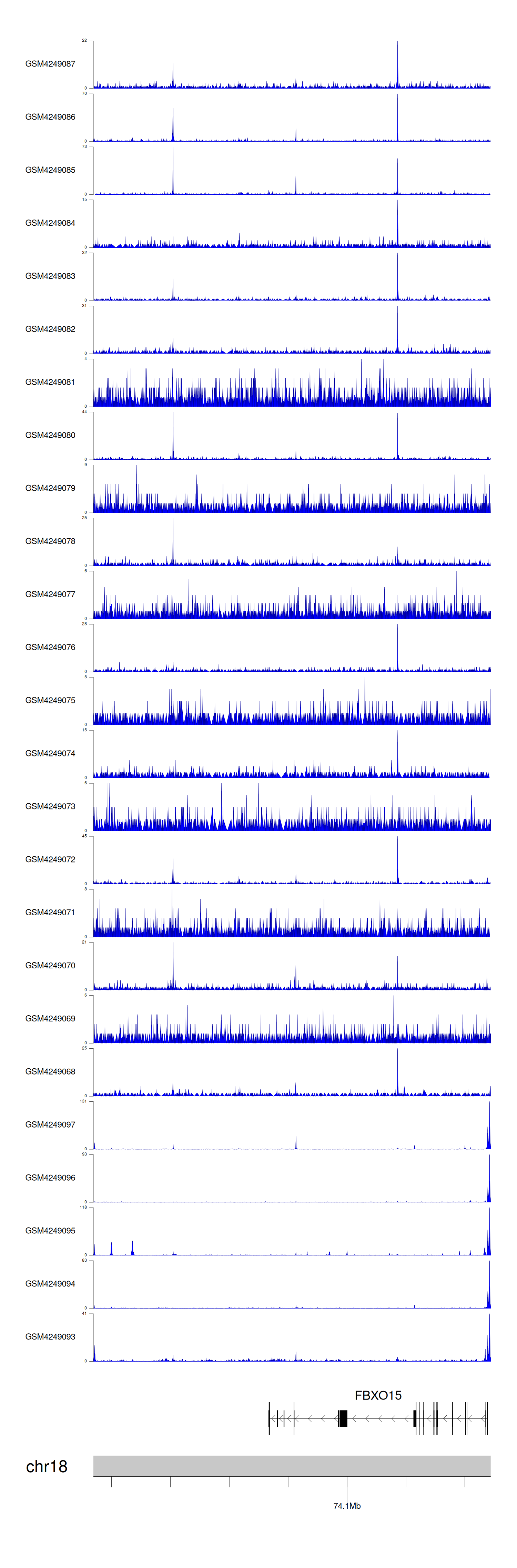 > Dataset: GSE143026 - FBXO15 peak across samples