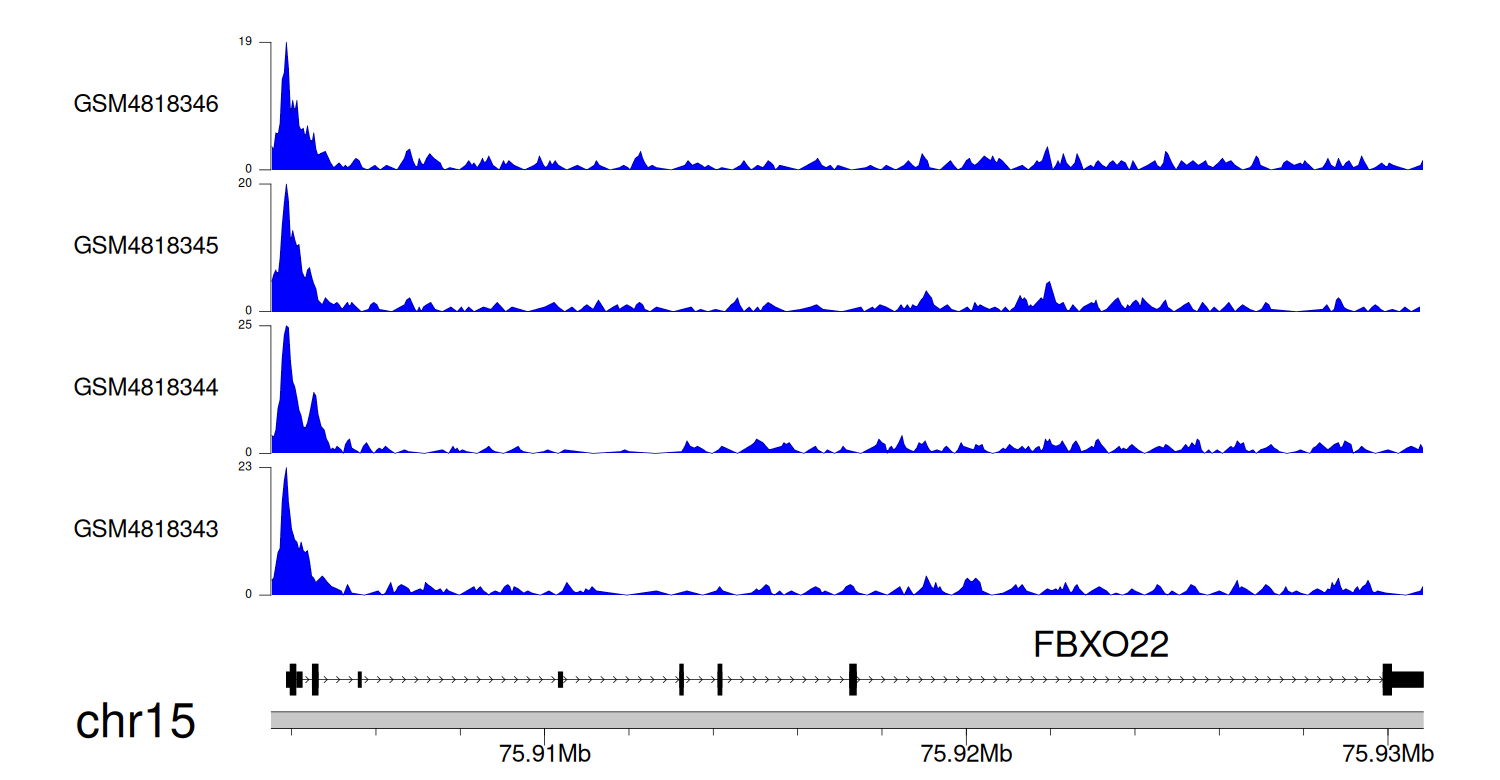 > Dataset: GSE131257 - FBXO22 peak across samples