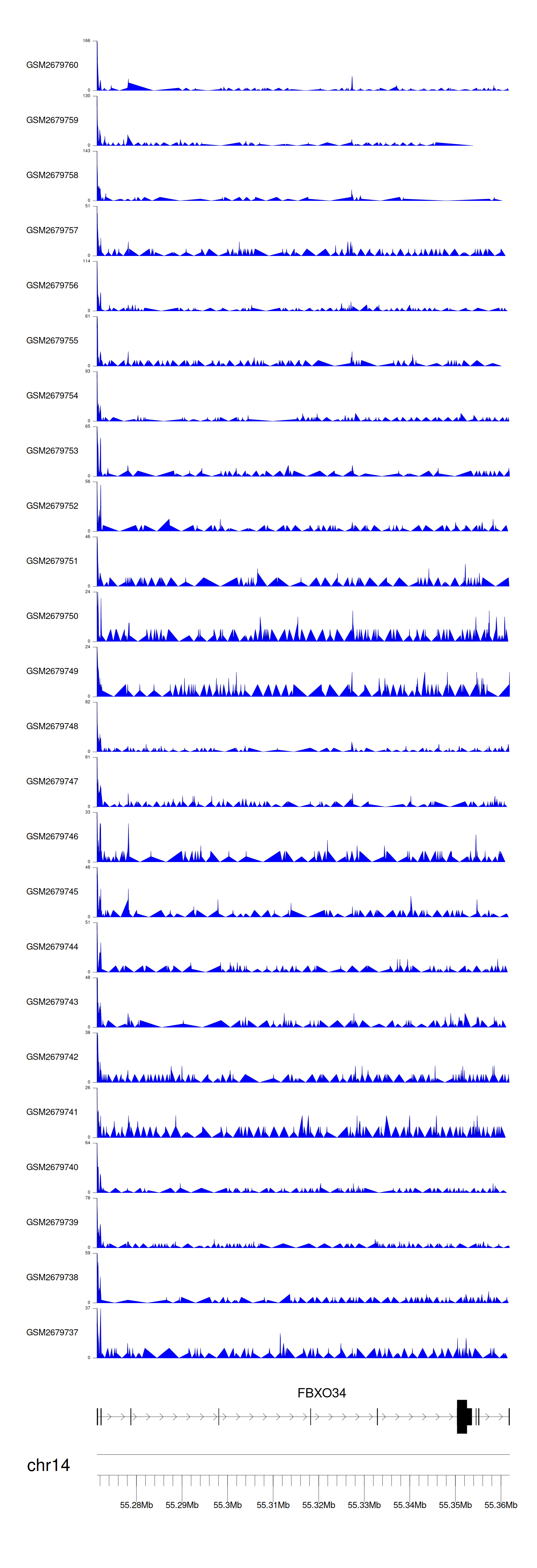 > Dataset: GSE100376 - FBXO34 peak across samples
