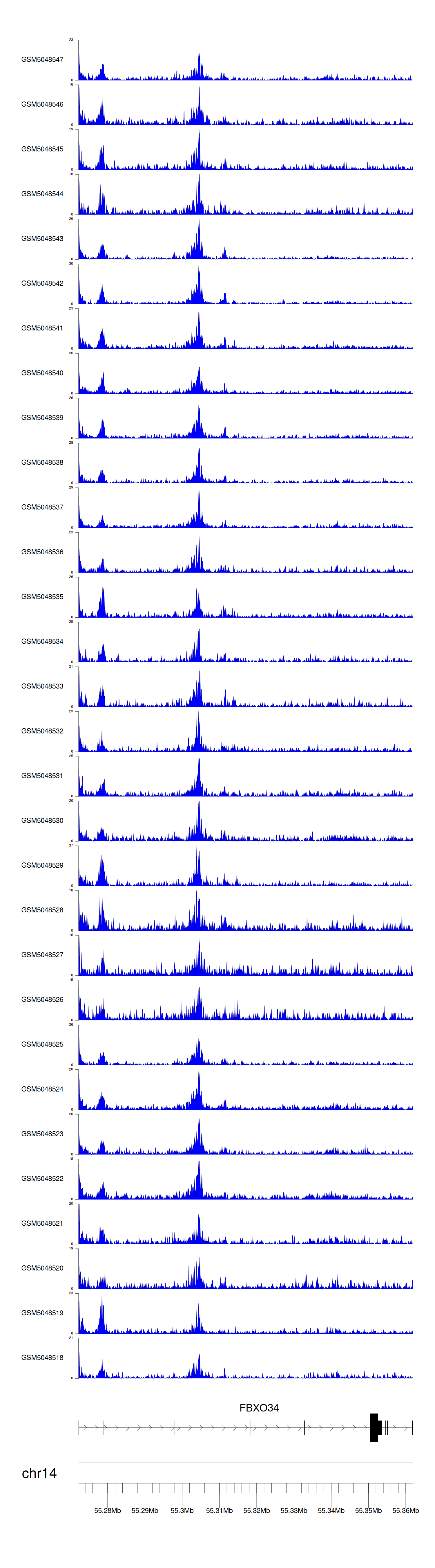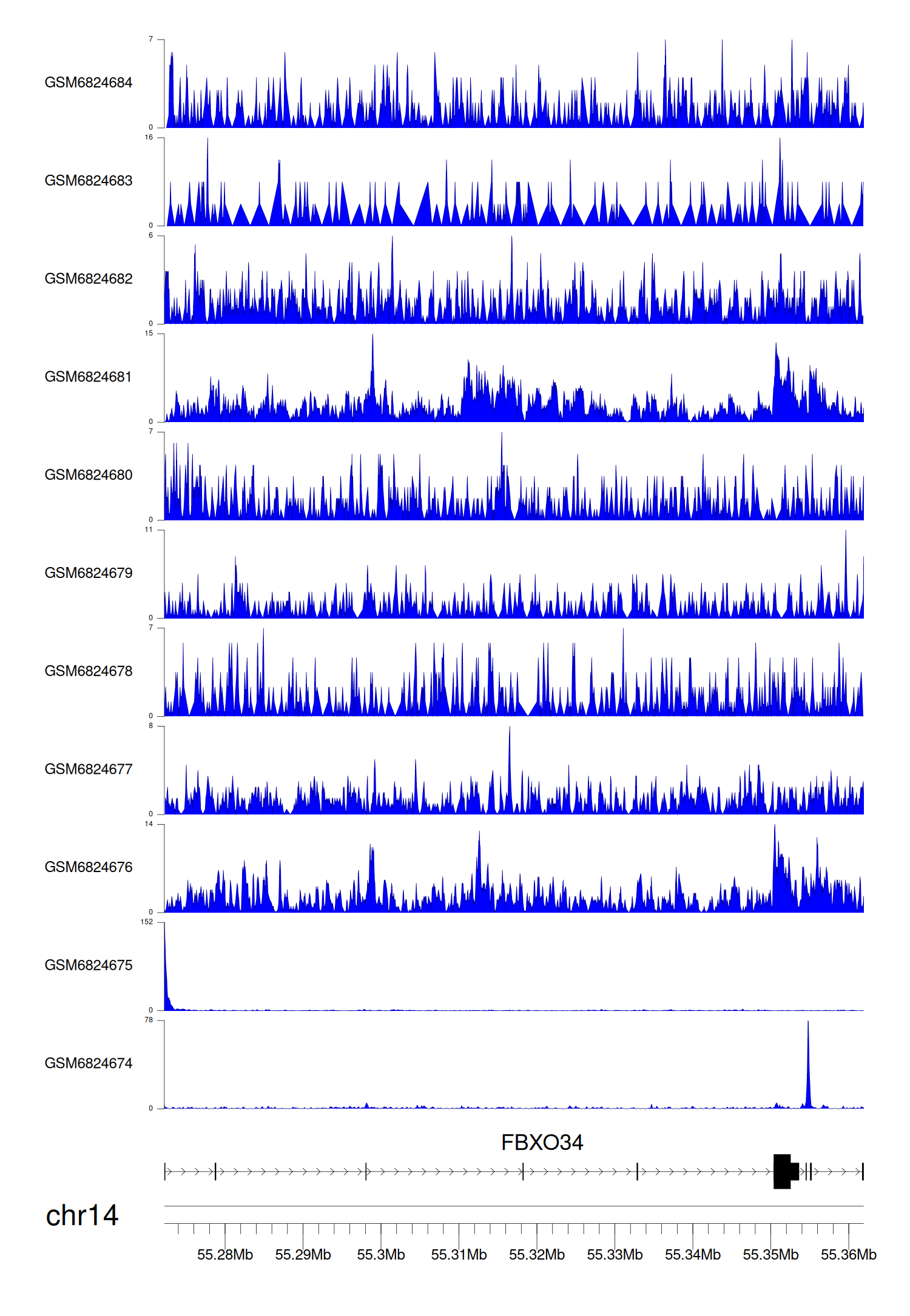 > Dataset: GSE144329 - FBXO34 peak across samples