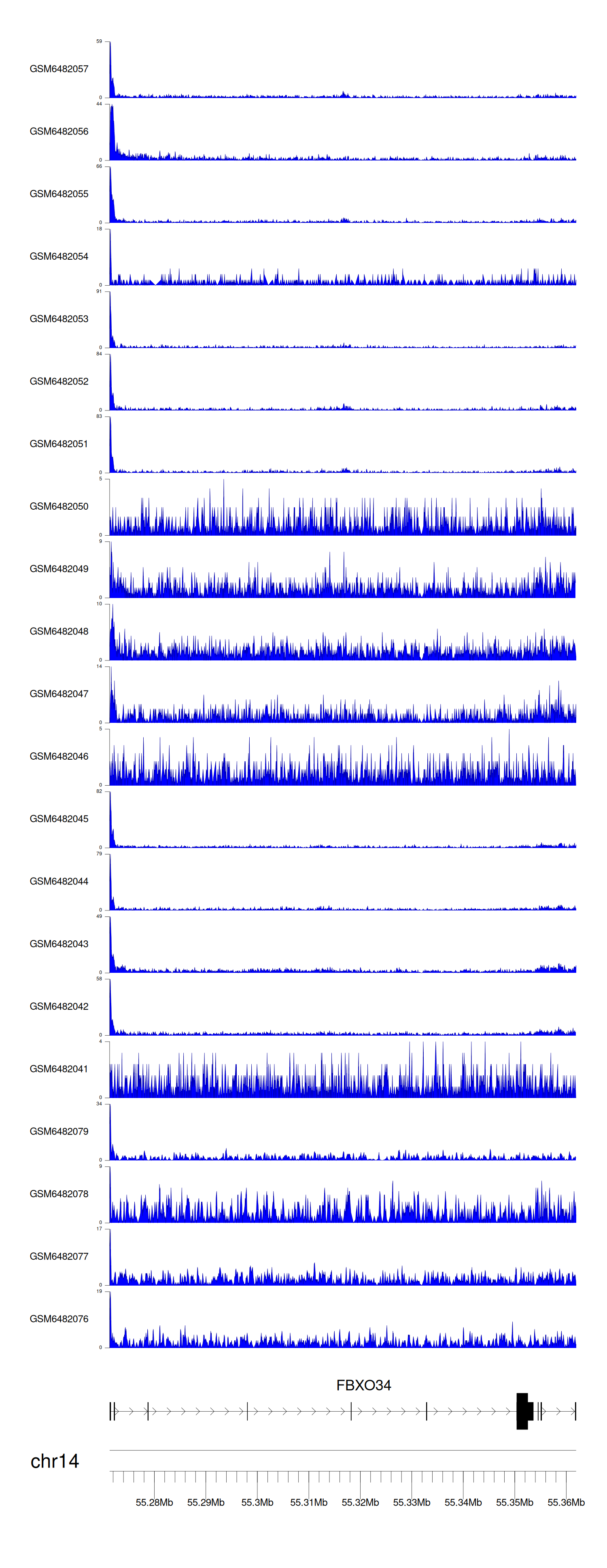 > Dataset: GSE165703 - FBXO34 peak across samples